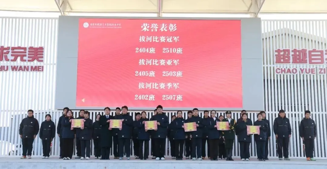 历经多轮激烈角逐,本次拔河比赛圆满落幕。2025年11月25日第十三周升旗仪式上,校领导为获奖班级颁发荣誉奖状,台下师生掌声雷动,致敬这份用团结与拼搏铸就的荣耀。