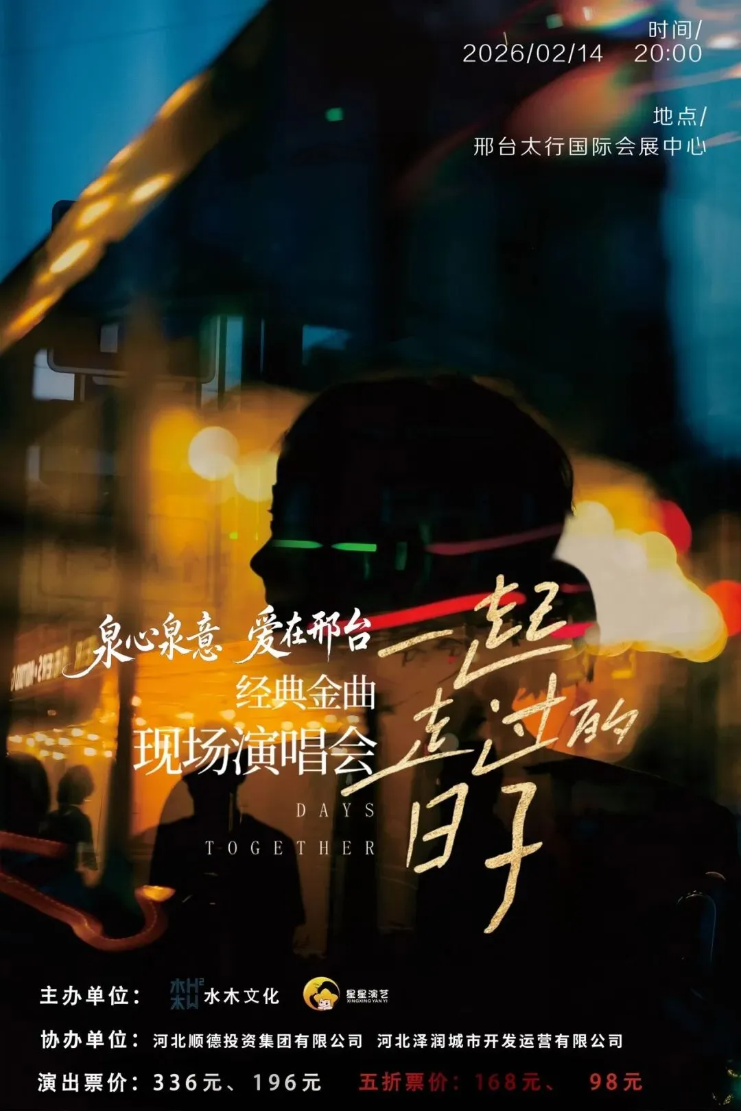 伴随着“太行泉城、美丽邢台”的浓浓年味,一场跨越时代的音乐盛宴即将温情开唱!2026年2月14日晚8点,《一起走过的日子》经典金曲现场演唱会,在“邢台太行国际会展中心”华丽上演。这将不仅是一场视听盛宴,更是一次全城共赴的温暖回忆之旅。