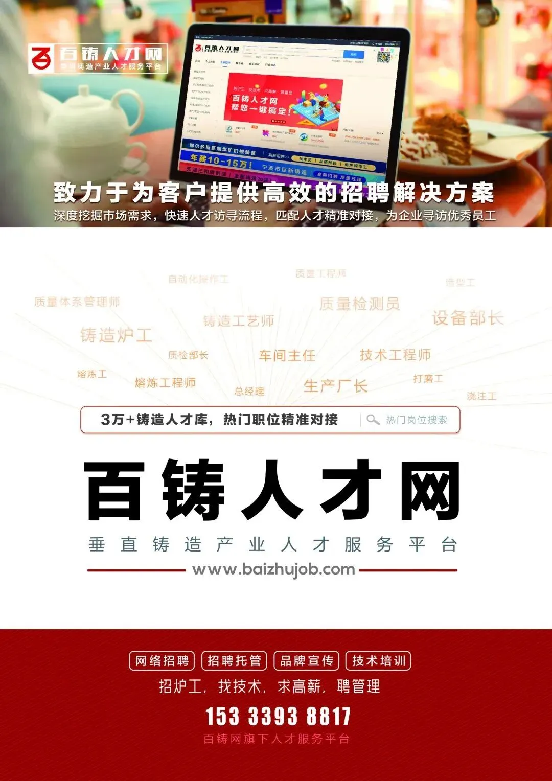 招聘岗位:铸造管理总经理 5年以上经验 |大专学历