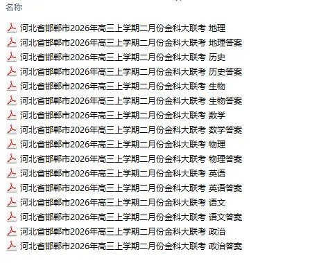 【河北卷】河北省邯郸市2026年高三上学期二月份金科大联考