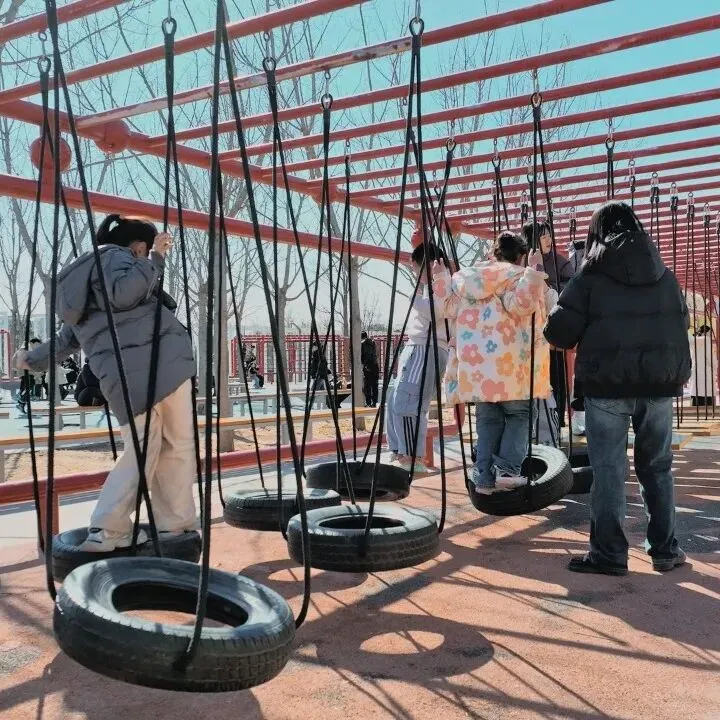 邯郸园博园童心乐园的特色在于其无动力游乐设备,这些设备不依赖任何电力或机械动力,而是通过攀爬、滑行、钻筒、走梯、荡秋千等功能部件和结构,为游客带来纯粹而有趣的游乐体验。这种设计不仅减少了能源消耗,更让游客在亲近自然的同时,享受到原始而纯粹的乐趣。