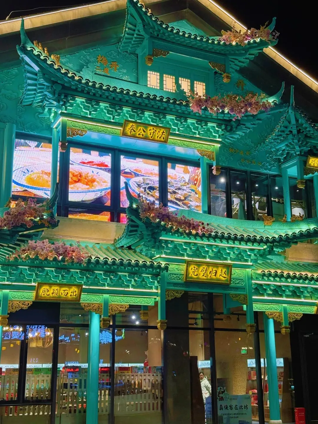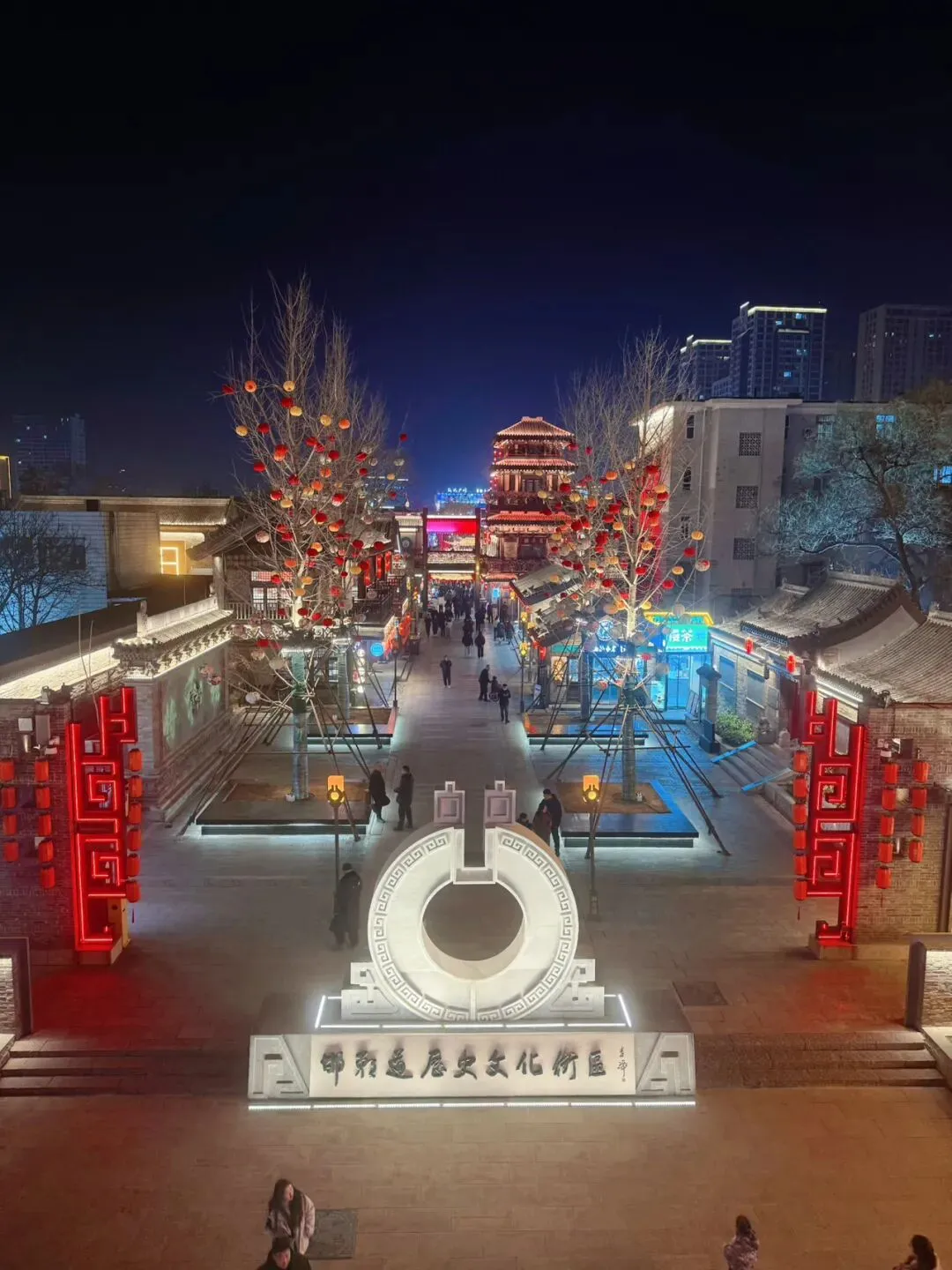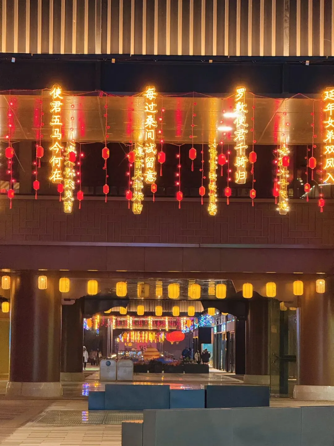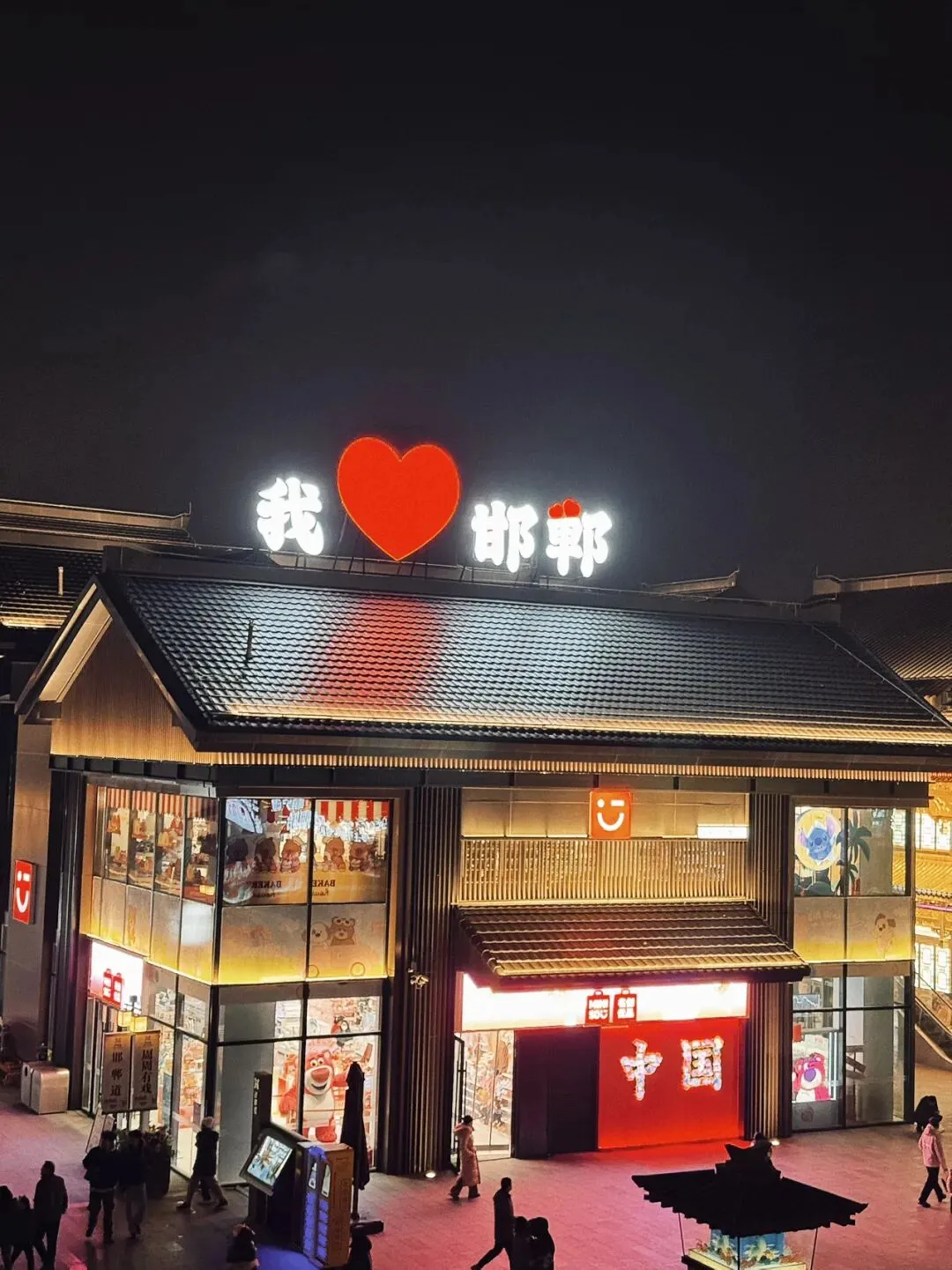 邯宝坊的外墙泛着温润的青绿色,在灯光下如玉雕般温润。让人震撼的是正中央那面巨大的圆形玉璧浮雕,上面用金色的文字刻满了“完璧归赵”“邯郸学步”等成语,在夜色中莹莹发光。站在玉璧下仰望,千年的成语故事变得触手可及,每一行文字都在诉说着这座城市的故事。
