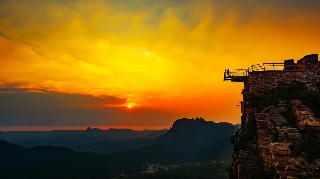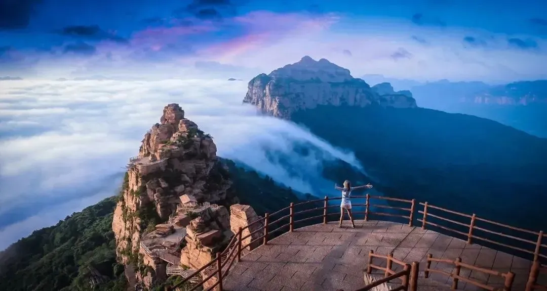 东太行景区位于邯郸武安市,因雄踞太行山东麓而得名,最高海拔1428米,主体由距今14亿~18亿年的中原古迹长城系红色石墩砂岩构成,是一处集太行山雄、奇、险、峻和巧石、云海、清幽、变幻于一体的山岳型自然景区。