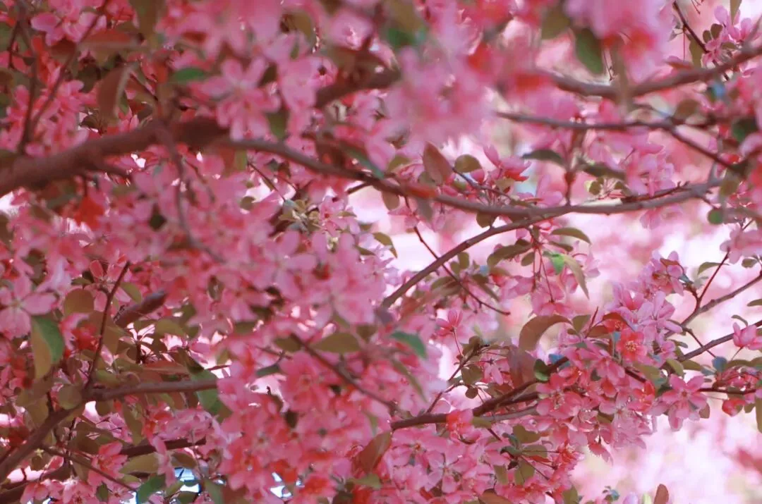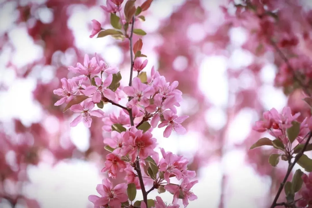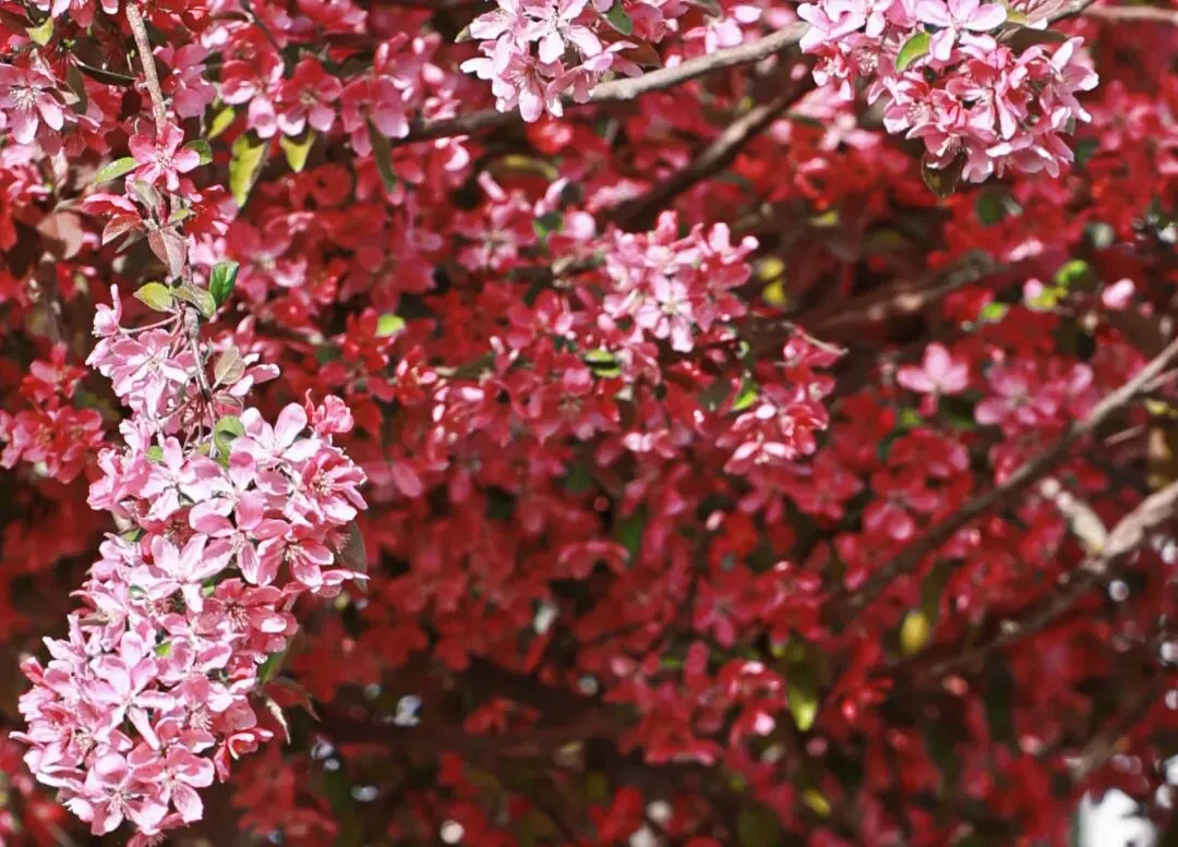 海棠与樱花争奇斗艳
