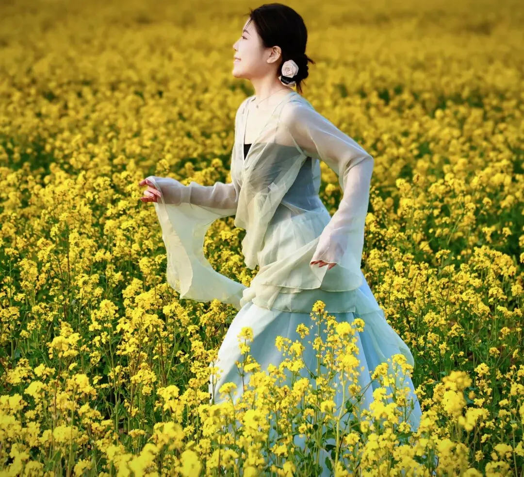 身着一袭飘逸汉服