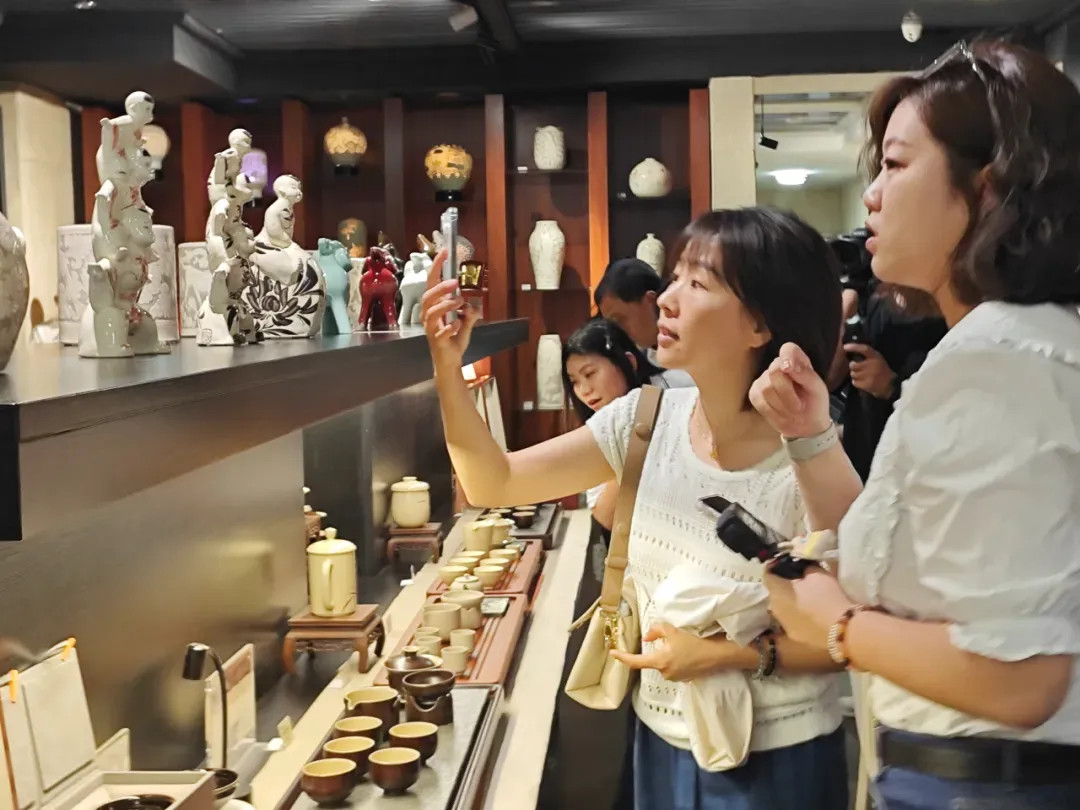 看穿越千年窑火,解码非遗新生。废旧厂房变身艺术空间,磁州窑元素与潮玩设计完美碰撞。在磁州窑艺术街区,玩转陶艺元宇宙,捏陶、刻花,工业旅游标杆+版权示范园区+夜间消费聚集区.....记者们在漫步街区之余,既能触摸历史的厚重,又能感受现代生活的活力。从古法烧制到现代设计,磁州窑藏着中华陶瓷的基因密码。“磁州窑如何从传统技艺走向文旅融合?”“磁州窑如何在新时代下做到在传承中发展,在发展中创新?”在磁州窑艺术馆,记者们针对磁州窑烧制技艺、陶瓷发展演变、文化传承创新、文旅产业打造等情况进行了深入采访,收获颇丰。