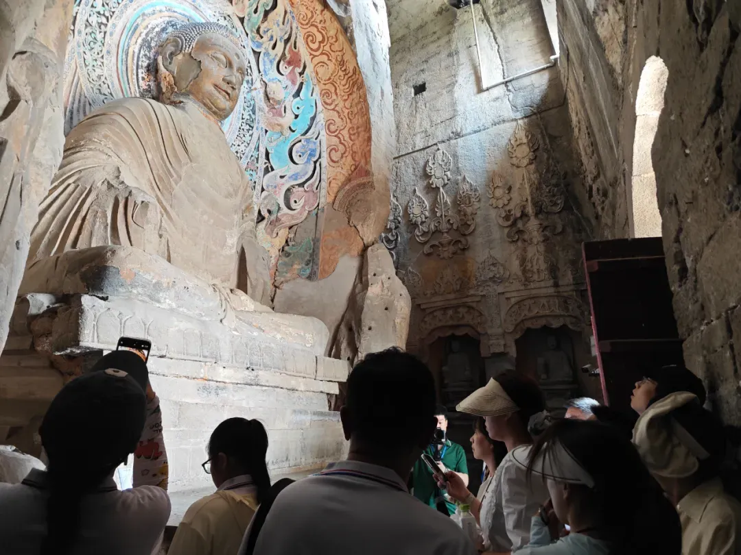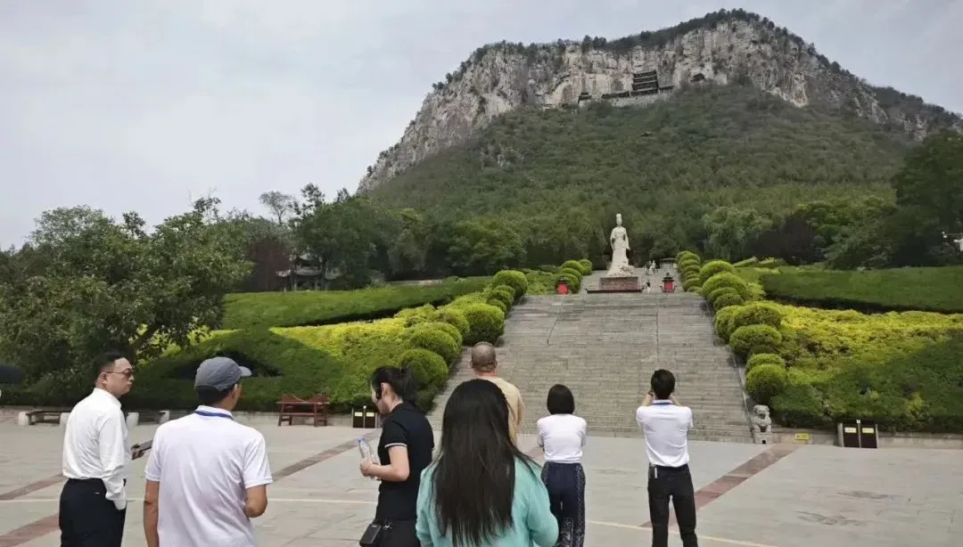 响堂山石窟千年佛韵穿越1500年,成为北齐艺术之光。响堂山石窟东魏始凿,北齐大成,与云冈、龙门鼎立三大皇家石窟。现存20余窟、450龛摩崖造像、5000尊佛像凝望山河,梵音刻经藏千年禅意。是北齐王朝璀璨文明的诗意具象——衣袂翩跹的飞天、庄重慈悲的佛陀,在峰峦叠翠间诉说艺术之美。记者们在山间拾级而上,石窟造像的庄严与苍翠山景相映成趣。残缺的石像、斑驳的摩崖石刻、独特的装饰纹样……犹如一部生动的史书,从不同角度展现了北齐时期的社会风貌、民族特征以及文化的繁荣,让记者们流连忘返。“畅行中国 成语邯郸”采访团的记者们来到了铜雀三台遗址公园,感受曹操挥毫观沧海、探究建安风骨,登临金凤台俯瞰漳河烟波,触摸冰井台千年夯土,穿越千年时光,曹操“对酒当歌”的豪迈诗篇仿佛穿越时空在耳畔回响。