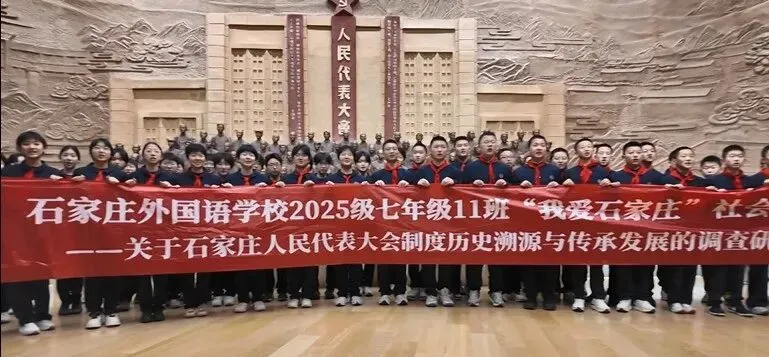 此次活动是石家庄外国语学校七年级11班“我爱石家庄——关于石家庄人民代表大会制度历史溯源与传承发展的调查研究”社会实践的重要组成部分。今后,班级还将通过访谈、问卷调查等多种形式持续推进调研,形成调研报告并转化为人大代表建议,为石家庄发挥红色民主资源优势、推动青少年民主法治教育贡献青春力量。