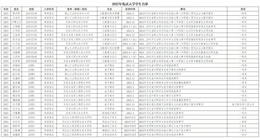 学校师生在市级以上技能竞赛中勇创佳绩,全年共71人次获一等奖,91人次获二等奖,51人次获三等奖。其中在2025年世界职业院校技能大赛总决赛上表现尤为突出,荣获“三金两银”的好成绩:医药生产与经营赛道金牌、化工技术赛道金牌、商贸赛道一金一银、财经赛道银牌,实现历史性突破,为石家庄市乃至河北省职业教育赢得了荣誉。在2025一带一路暨金砖国家技能大赛之第三届实验室安全技术赛项(中职组)全国总决赛、第三届电子商务运营数据分析赛项全国总决赛上均获全国一等奖,学校获优秀组织奖;在2025年“科云杯”企业税务及经营管理技能大赛、财会职业能力大赛中,均获团体一等奖。以赛促教,以赛促学,夯实育人成效,彰显了学校技能硬实力。