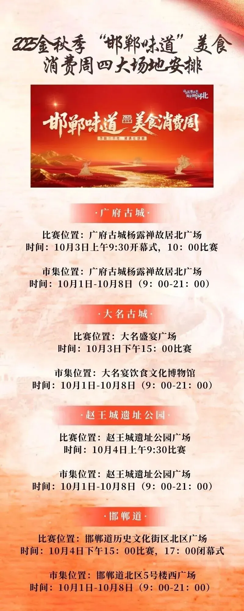 这场美食盛宴将持续整个黄金周,让每一位来到邯郸的游客都能感受这里独具魅力的城市风情。邯郸,正以最热情的姿态,邀请八方宾朋共赴这场金秋的美食之约。