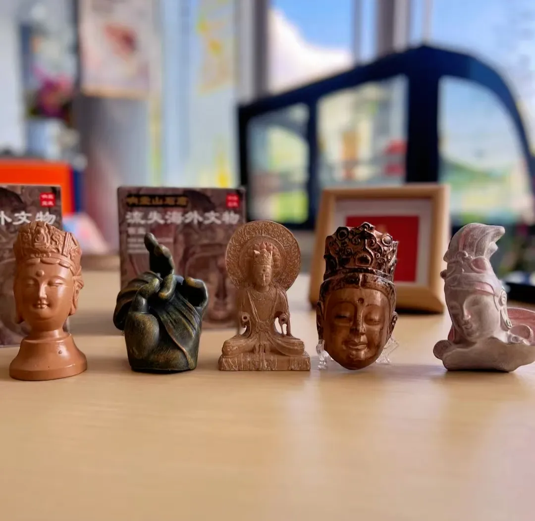 沿着这一思路,景区适时推出了“流失海外文物盲盒”,迅速在文创赛道上抢占先机。“这些盲盒中的每一件‘文物’,均以海外博物馆所藏的响堂山石窟文物为原型,从纹饰走向到细节肌理,都力求还原北齐造像的雄浑气韵。”响堂山景区副总经理温楷介绍道。更值得一提的是,每个盲盒中还附有一张专属文物“身份卡”,清晰标注佛像名称及其现藏机构,让收藏者在打开盲盒的瞬间,仿佛化身为“文物守护者”。
