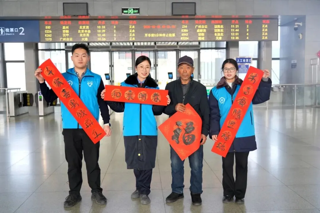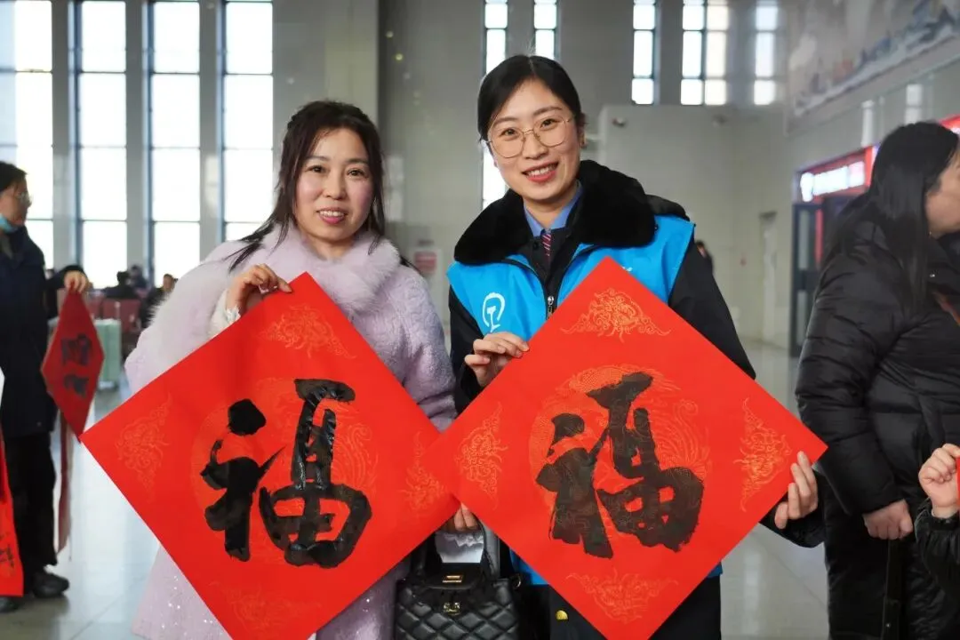 为营造温馨祥和的春运氛围,车站开展2026年春运“万福迎春”书法公益活动。书法爱好者挥毫泼墨,为旅客现场书写福字、春联,不仅为春运旅途增添了浓浓的年味,让旅客在归家途中感受别样温暖,更凝聚起广大干部职工同心同德、奋战春运的强大精神力量,以暖心服务为春运保驾护航。为深入贯彻党的二十届四中全会精神,扎实推进“十五五”开局之年各项工作,车站紧扣春运运输畅通与生产安全核心目标,以实现2026年首季开门红为导向,引导全体干部职工提高政治站位、强化责任担当,立足岗位履职尽责,全身心投入春运各项重点工作。强化全员干事创业精气神,激励全体职工凝心聚力、真抓实干,以扎实行动奋力冲刺首季开门红,为全年工作开好局、起好步。