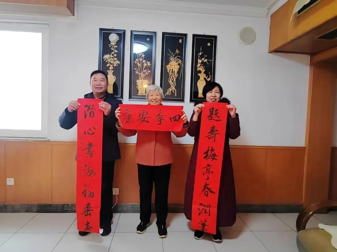 此次慰问活动的一大亮点,是由市楹联学会骨干成员为老同志及家属精心撰写,并由书法家邵瑞明书写的专属春联。这些春联,切合受赠家庭实际,辞工意洽,深受老干部及慰问家属的欢迎。充分显示了春联这一传统文化形式在现代社会中的独特功用。具有良好的示范效应。为做好这项工作,市楹联学会还开展了部分会员征集活动,现将征联做一汇编,以飨大众。