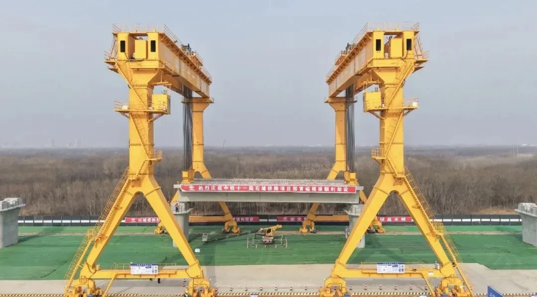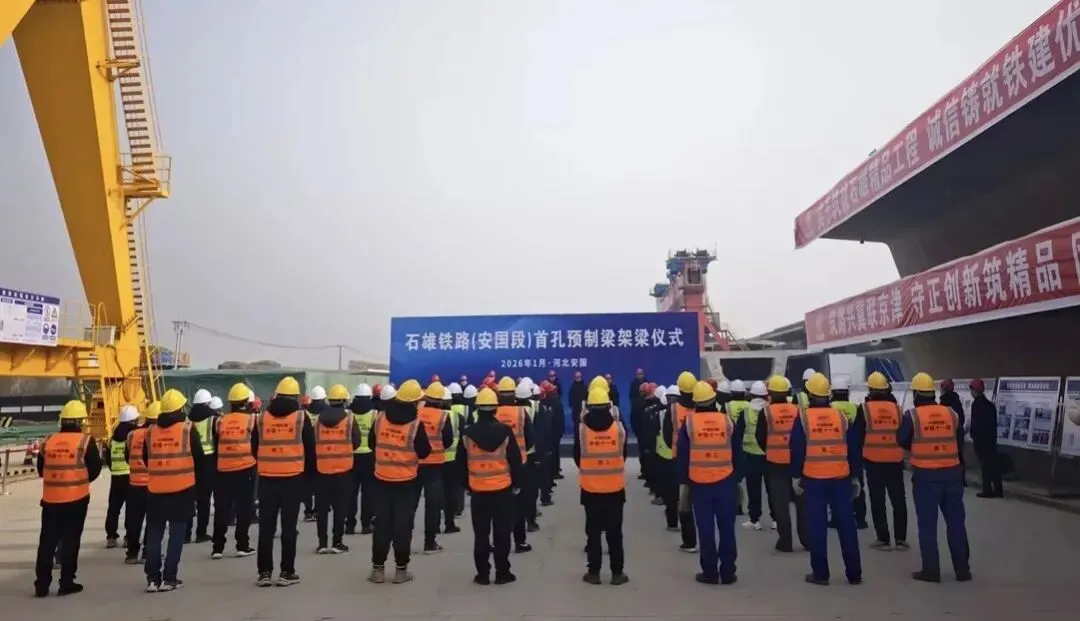 1月26日,随着长32.6米,重697吨的箱梁平稳落在跨曲港高速公路特大桥上,标志着新建石家庄至雄安新区高速铁路(以下简称“石雄高铁”)安国段首孔箱梁成功架设,为后续无砟轨道铺设打下了坚实基础。