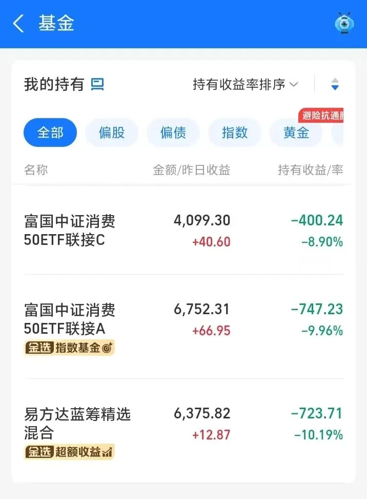 下图是支付宝持仓目前浮亏较多的: