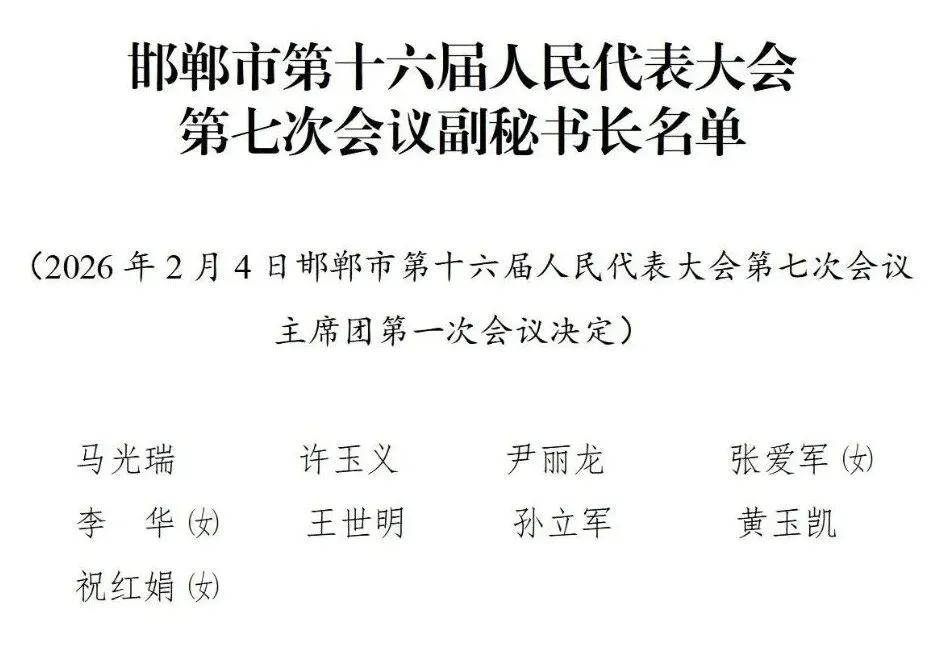 邯郸市第十六届人民代表大会第七次会议副秘书长名单