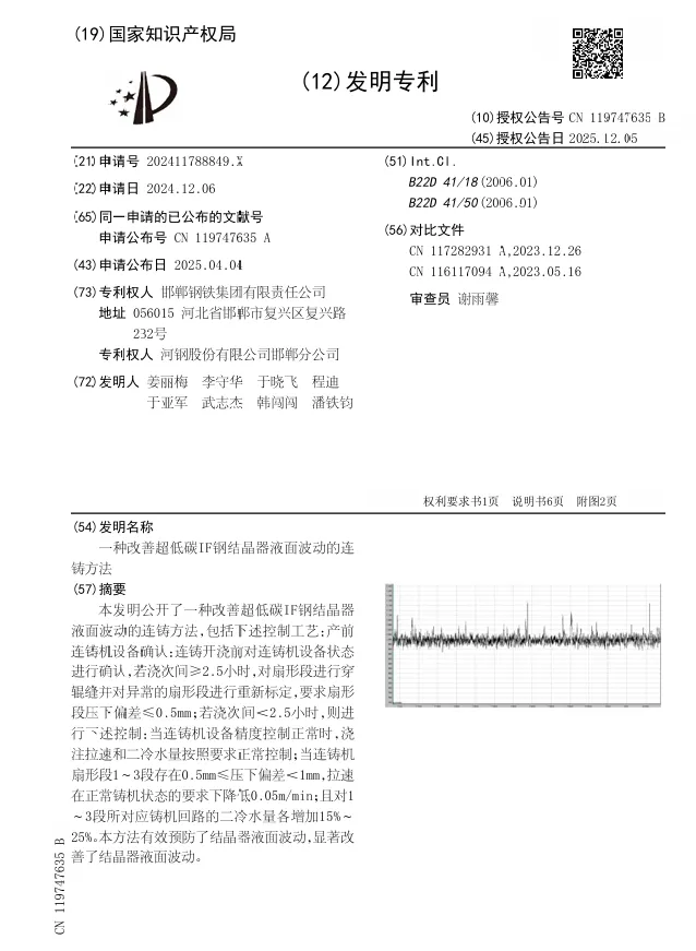 邯郸发明巡礼—“一种改善超低碳IF钢结晶器液面波动的连铸方法”