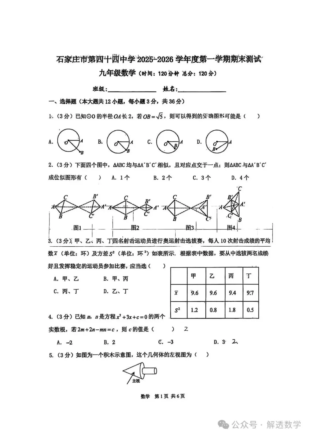 夸克「2026.1石家庄44中九年级期末试卷」