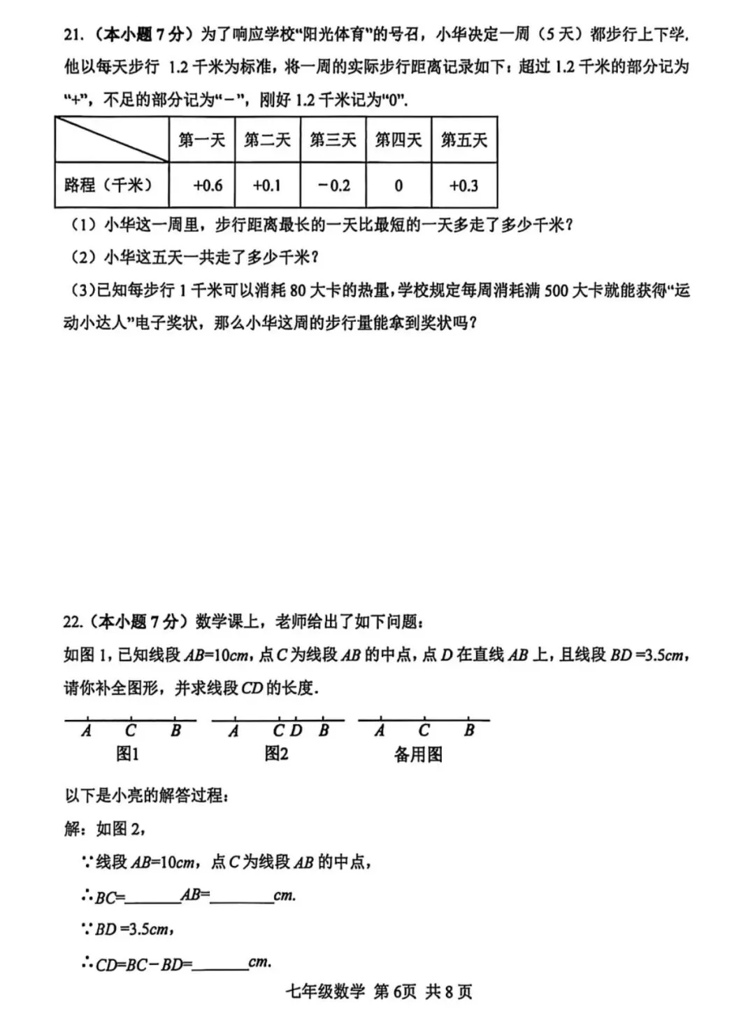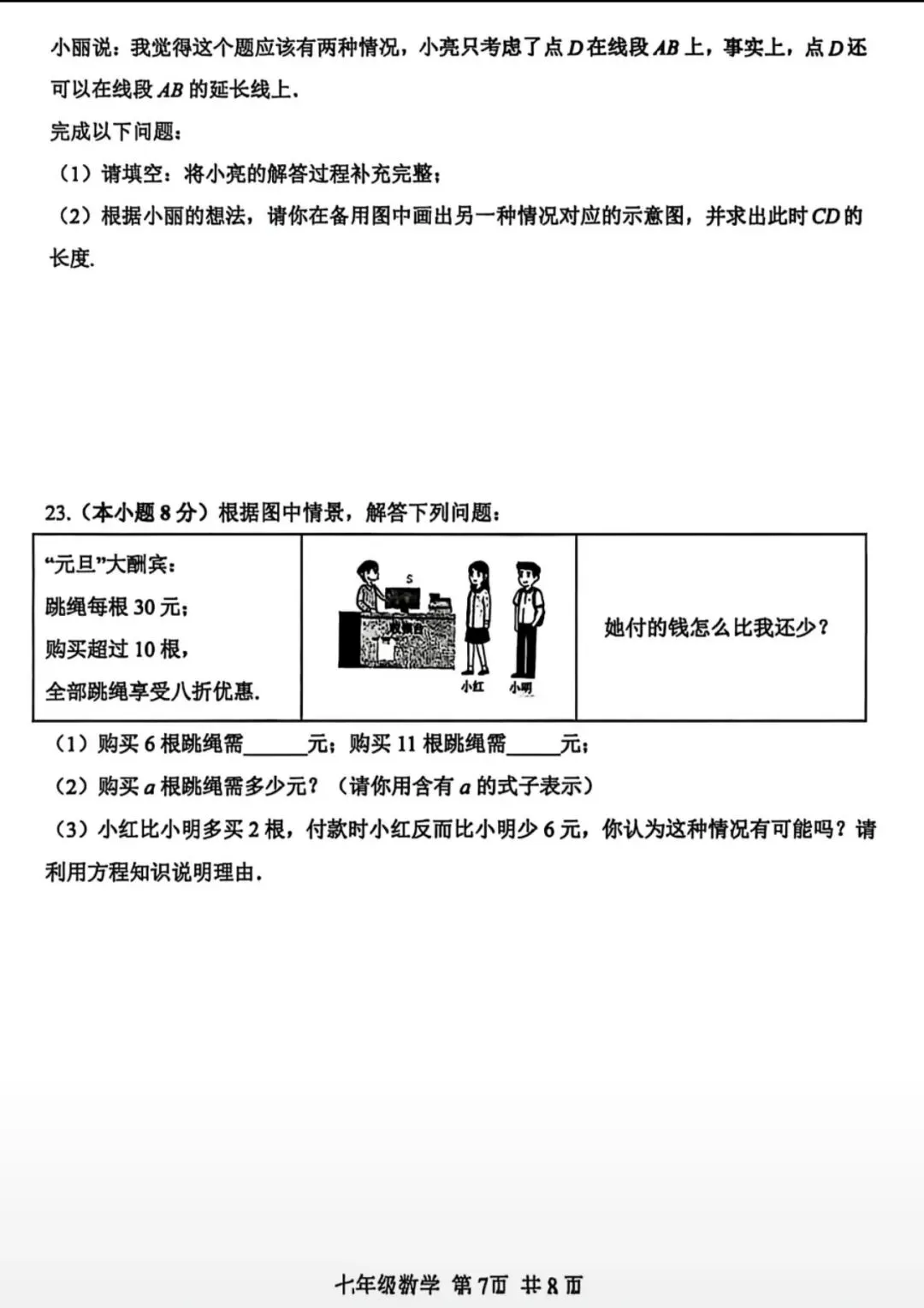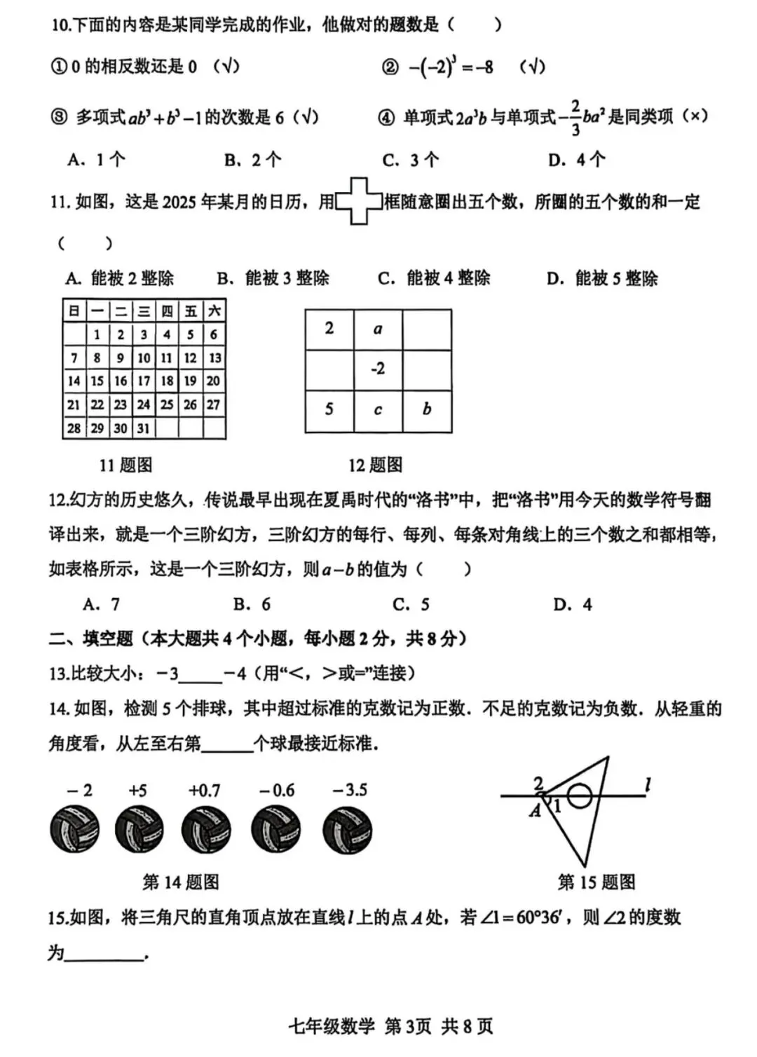 26.1河北省期末考试七年级数学试卷含答案(冀教版)