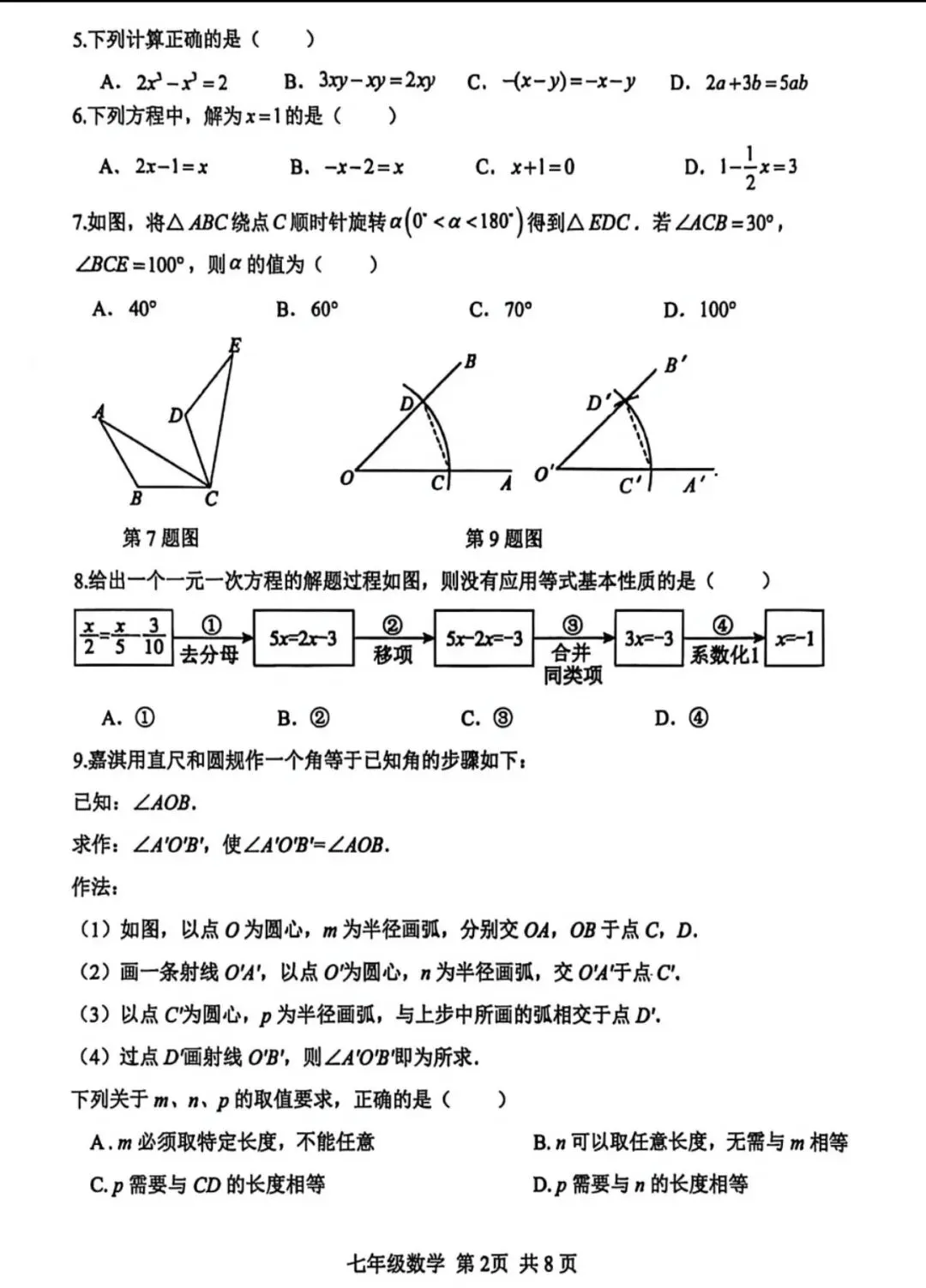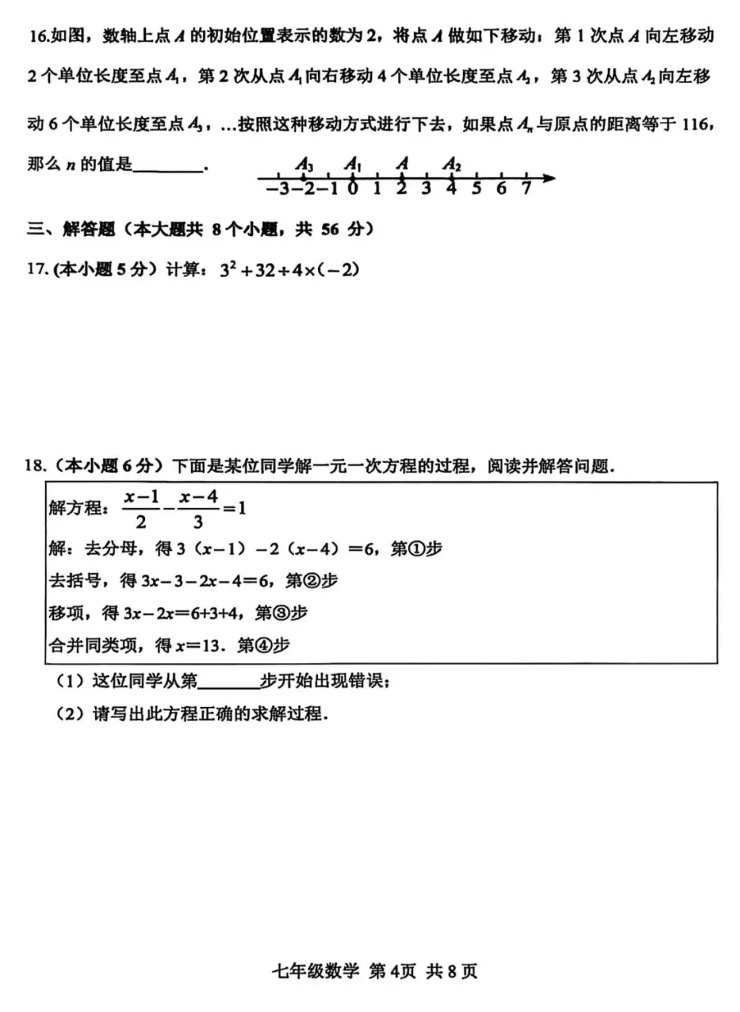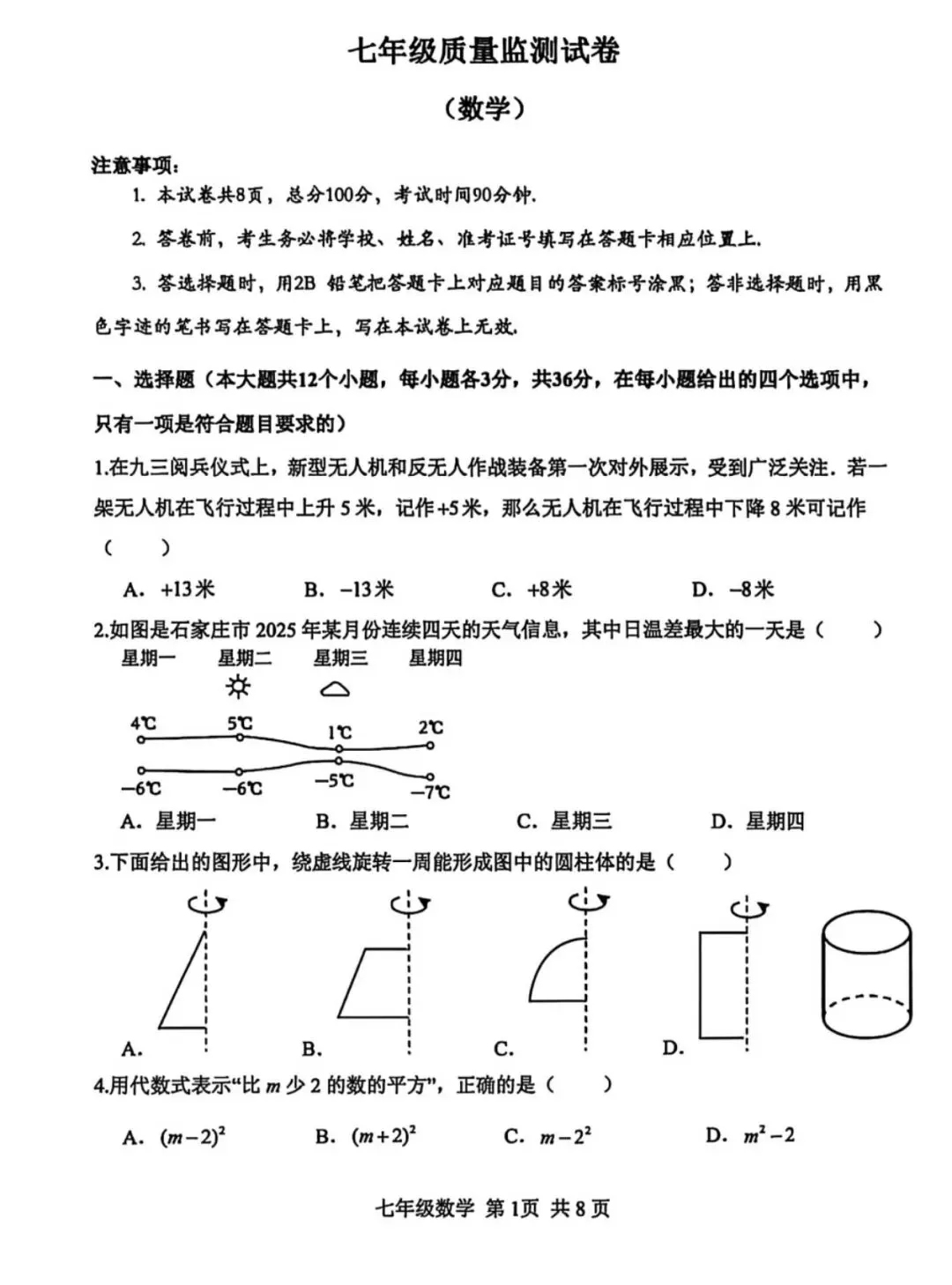 26.1河北省期末考试七年级数学试卷含答案(冀教版)