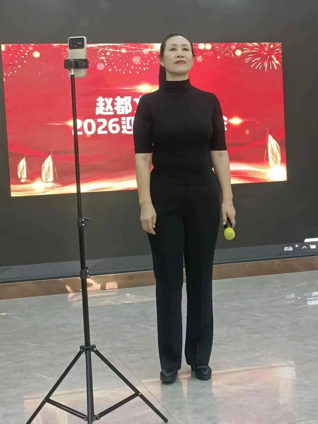 李新县老师再度开嗓,献上独唱《最后的倾诉》,醇厚美声萦绕全场,余音绕梁,让众人沉浸在极致的听觉享受中。知名作家、摄影家吕国防老师带来经典童谣《捉泥鳅》,“池塘的水满了,雨也停了,田边的池塘里到处是泥鳅……”熟悉的旋律响起,满满童年回忆涌上心头,温暖治愈,勾起全场温情共鸣。谢群、王英霞两位老师合作诗朗诵《龙马踏春启新程》,诵读声铿锵有力、掷地有声,道出了辞旧迎新、逐光前行的美好愿景。
