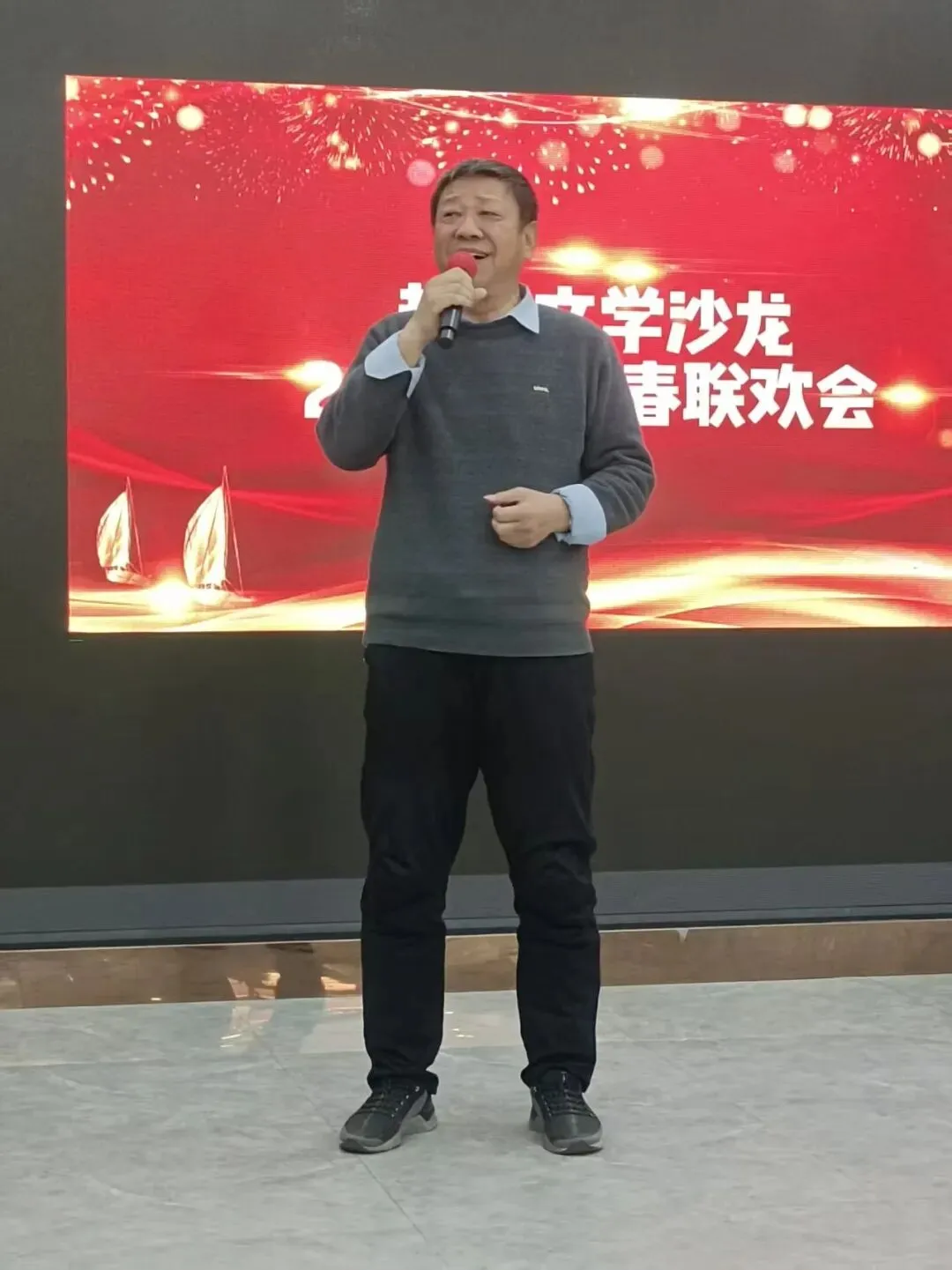 赵都文学沙龙韩吉祥主席首先登台,为盛会致新春贺词:“尊敬的各位作家老师、亲爱的文学朋友们,大家上午好!岁序更迭,春信将至,明日我们迎来二十四节气的首个节气——立春。俗话说,一年之计在于春。今天,大家欢聚一堂,以文会友、以艺迎春,这场赵都文学沙龙的新春之约,恰是最暖的岁末相逢、最美的文心相聚……”贺词句句饱含对文学沙龙发展的殷殷期许,也满载着对每一位文友的真挚新春祝福。