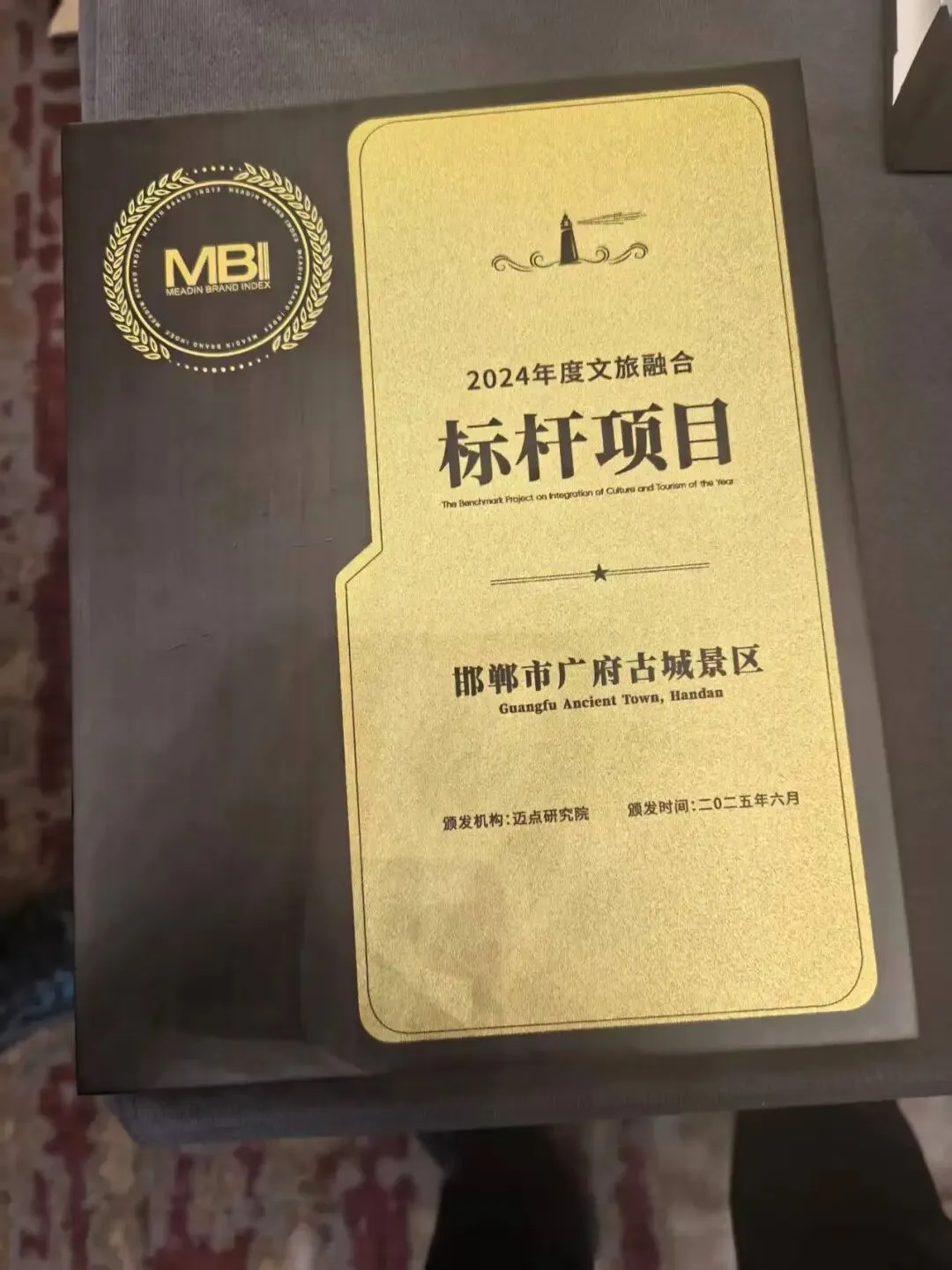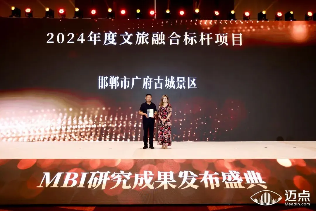 6月19日,邯郸市文体旅产业集团有限公司(以下简称文体旅集团)广府古城景区在第十四届迈点品牌发展大会上,凭借在文化遗产活化利用与旅游创新融合领域的卓越实践,从全国众多文旅项目中脱颖而出,荣获“2024年度文旅融合标杆项目”称号!