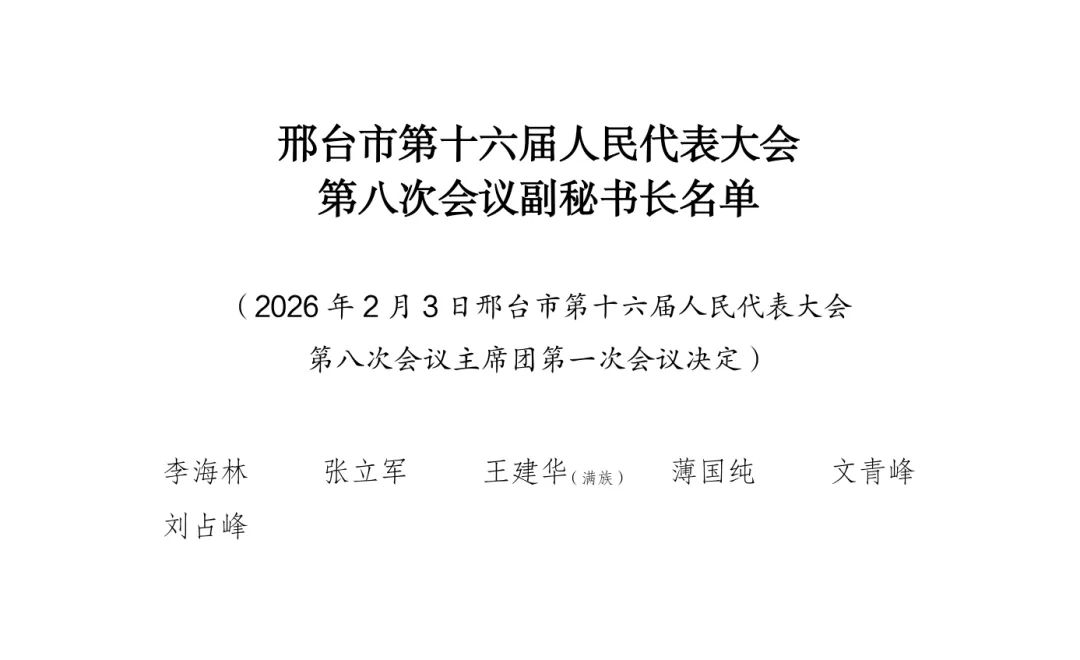 >邢台市第十六届人民代表大会第八次会议副秘书长名单