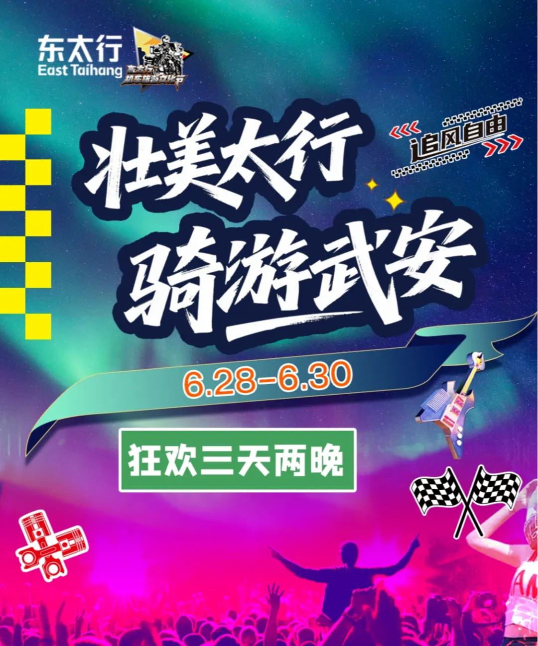 若你有匠心妙手,或怀一技之长,愿在这场狂欢中刻下独家印记——东太行后备箱市集虚位以待!招募特色摊主;手作匠心现琳琅好物,小吃珍味飘烟火人间,二手故事藏岁月余温。让创意与太行星月同辉,在机车文化季的舞台上,绽放独属你的光芒!