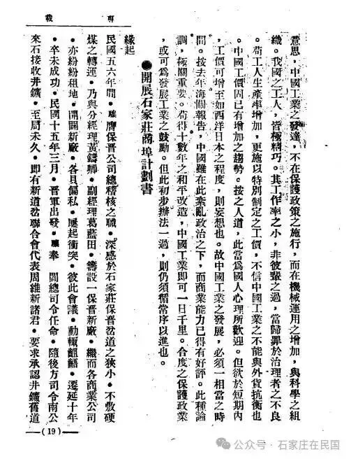 《开展石家庄商埠计划书》全文(用简体字翻译)