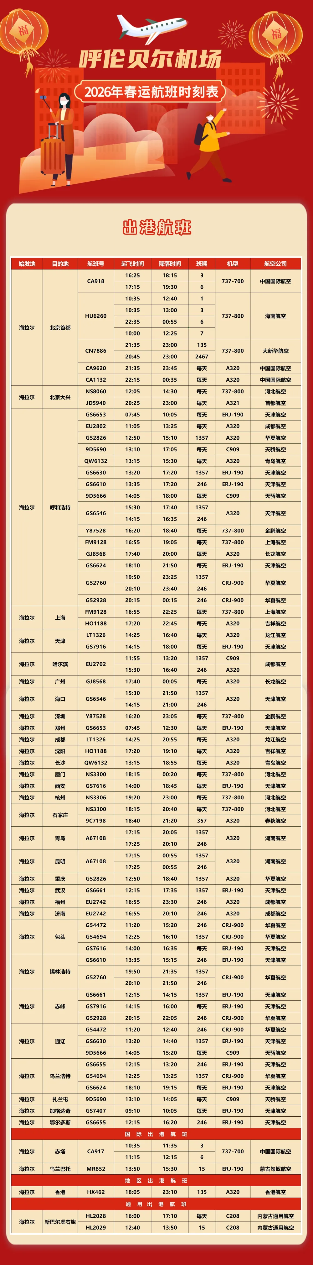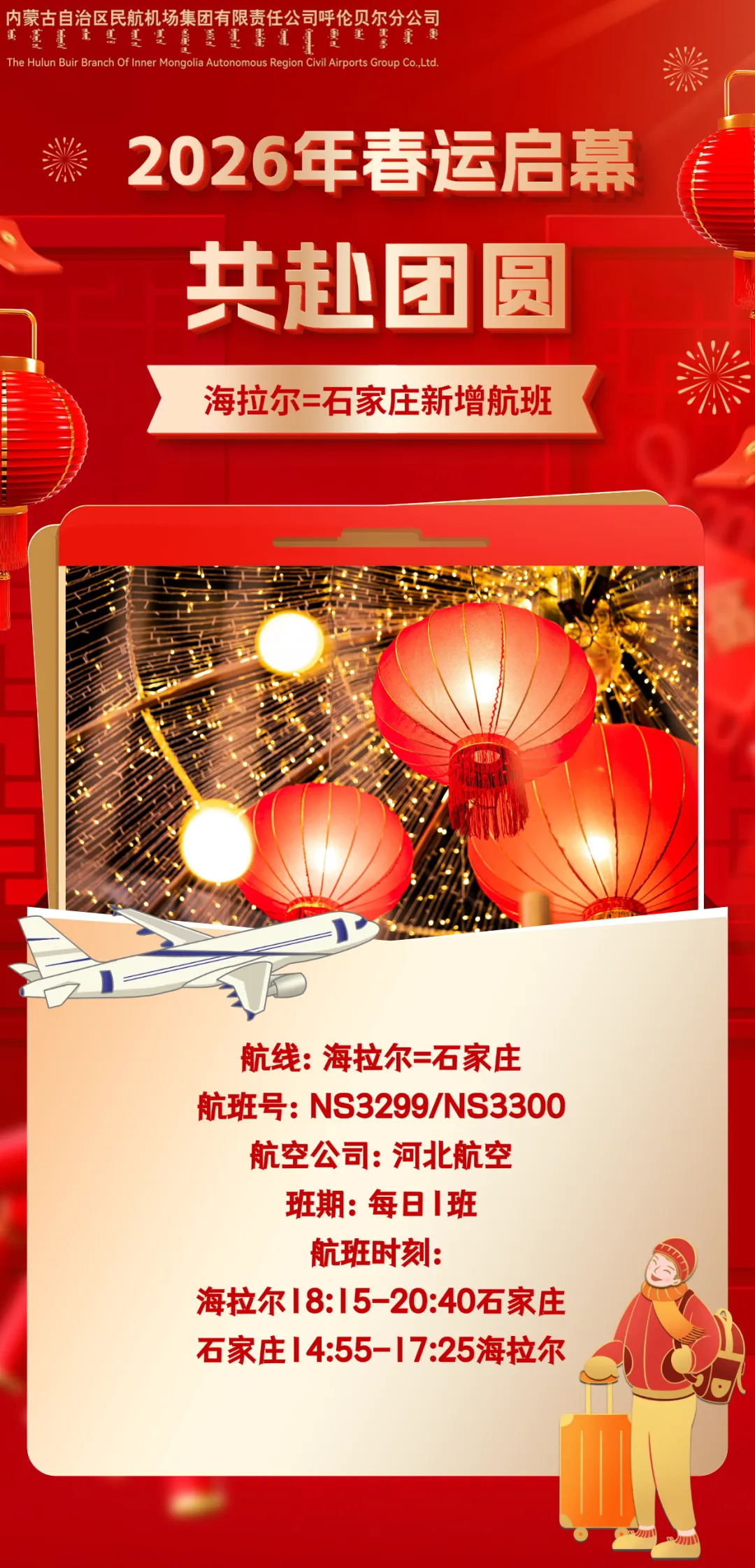 >呼伦贝尔机场丨爱在归途!海拉尔=石家庄春运新增航班!