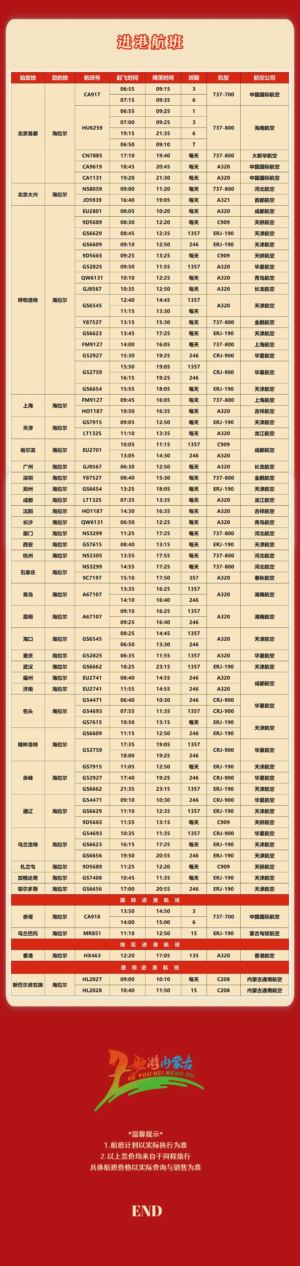 呼伦贝尔机场丨爱在归途!海拉尔=石家庄春运新增航班!