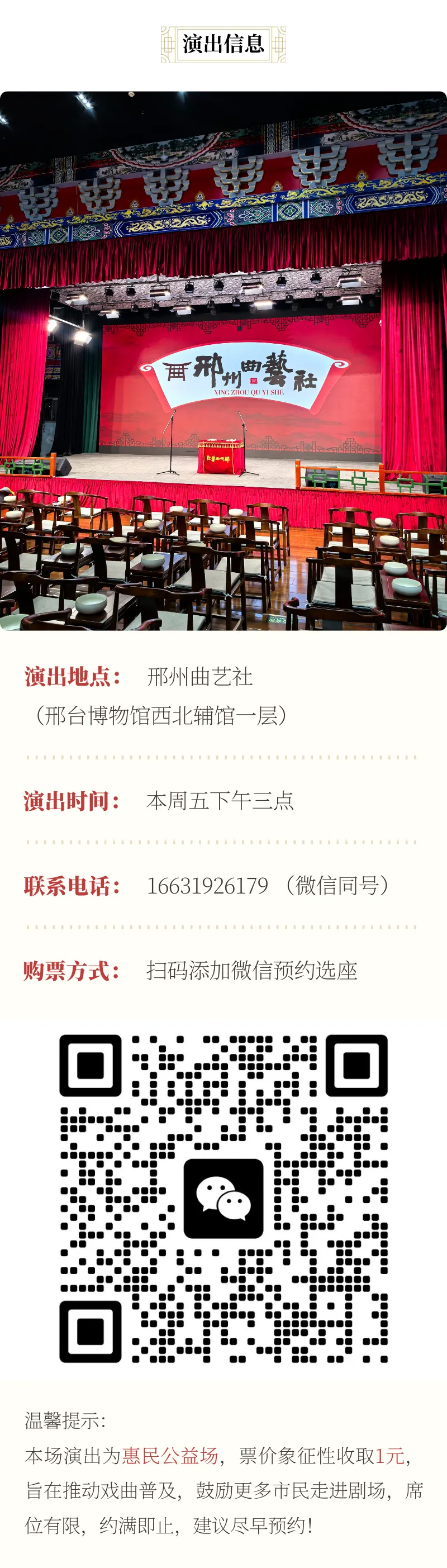 >邢州古城里的文化盛宴|邢台文旅集团邢州曲艺社惠民演出~本周五1元听豫剧!