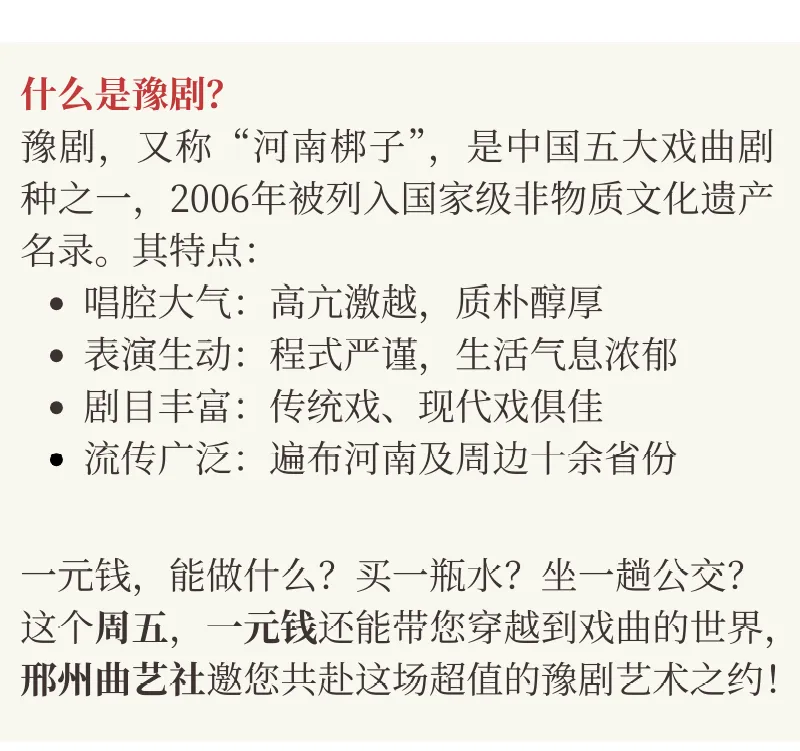 邢州古城里的文化盛宴|邢台文旅集团邢州曲艺社惠民演出~本周五1元听豫剧!