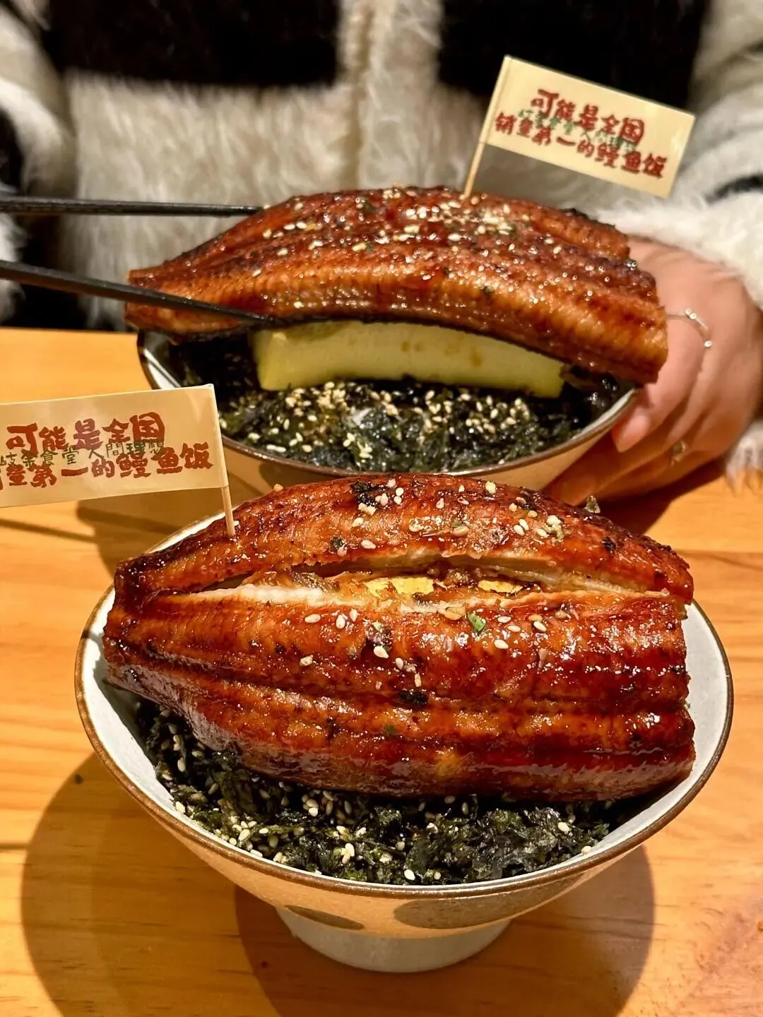 鳗鱼好大一块,盖在淋满酱汁的厚蛋烧上,搭配海苔拌饭,一口下去直接封神,谁能拒绝这个组合!作为正餐或者约会都很合适。