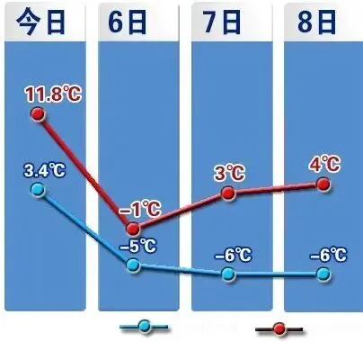 后天夜间:晴间多云 风向风力:偏北风1~2级 最低气温:-6℃