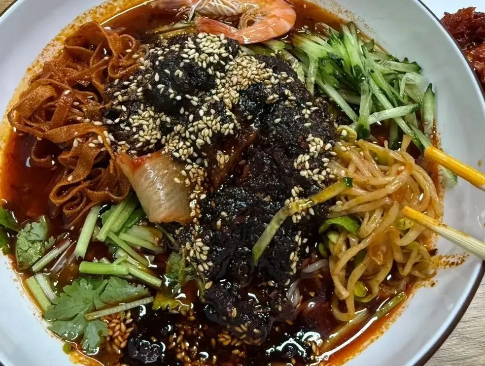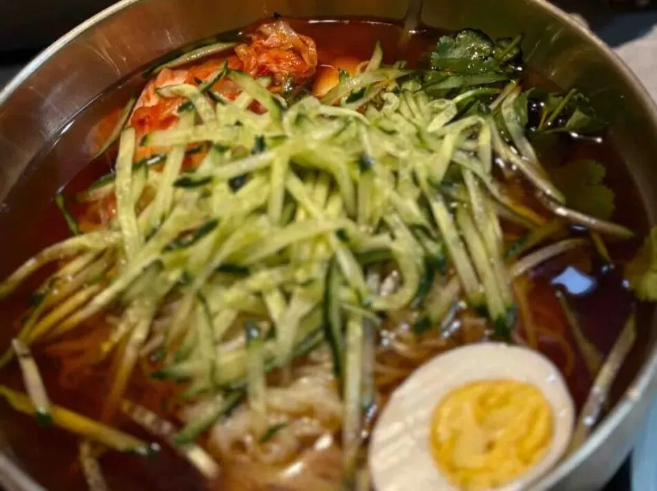 他家招牌朝鲜冷面是荞麦面的,吃起来非常的Q弹,汤汁喝起来是酸甜口的,搭配上辣椒油,香味十足,酱汁浓郁。