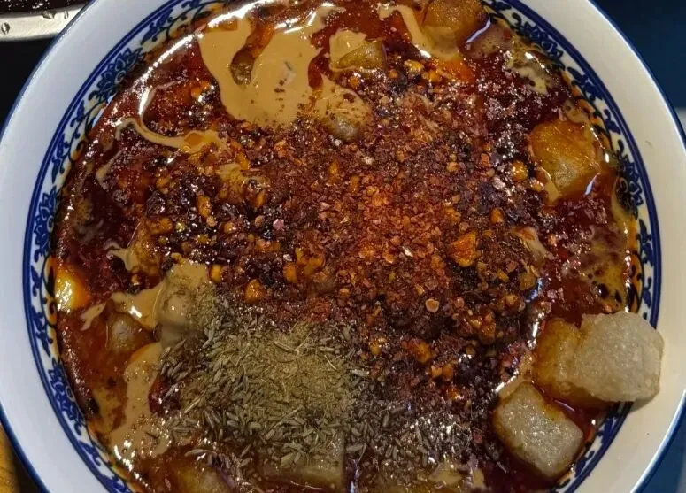我点了肥牛的,15一份,还特意加了很多的麻油和辣椒油,真的是绝绝子!