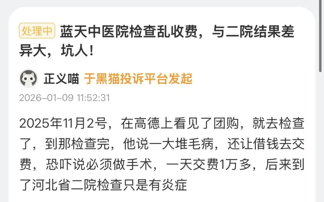 与20余年运营史相伴的,是长期居高不下的患者投诉与负面舆情。该院长期被患者举报存在违规诊疗、过度医疗、虚假宣传、恶意加价等问题,形成了固定的“医疗套路”: