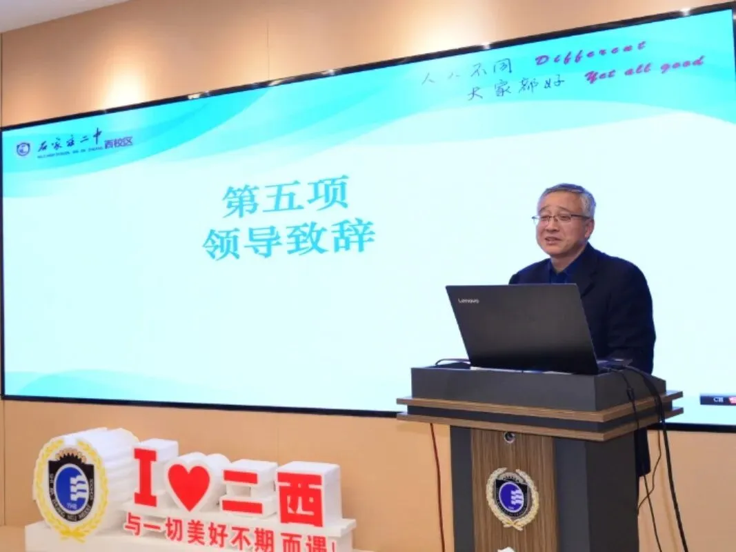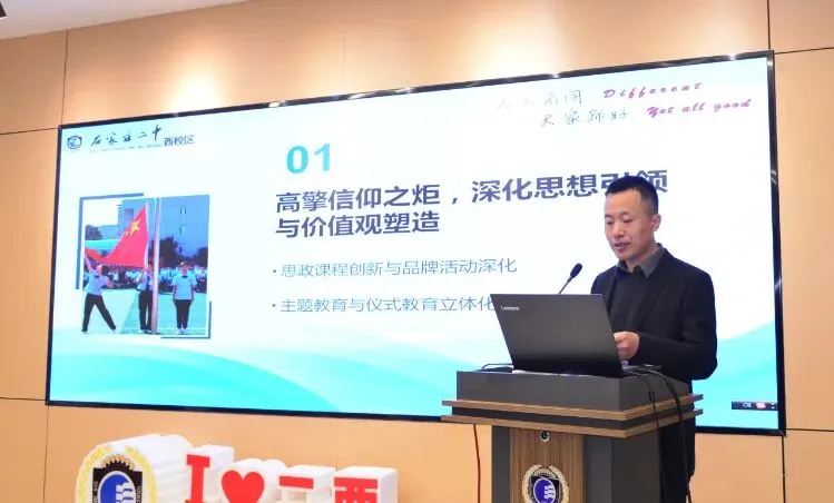 教务科副主任谷雨竹:以“深耕教研促改革,聚焦课堂提实效”为路径,重点介绍以“三单四环”高效课堂为核心,通过精品示范课,集团大教研、学科特色活动等,学校教学质量显著提升。在师资建设上,51名教师斩获省市级荣誉,承办河北省多学科骨干教师培训,为教学质量注入强劲动力。同时指出学校在学生假期学习规划中,作业设计遵循“量化统筹、三级审核、精选提质”原则,设置基础必做、拓展选做与自主规划板块,兼顾差异与实效。