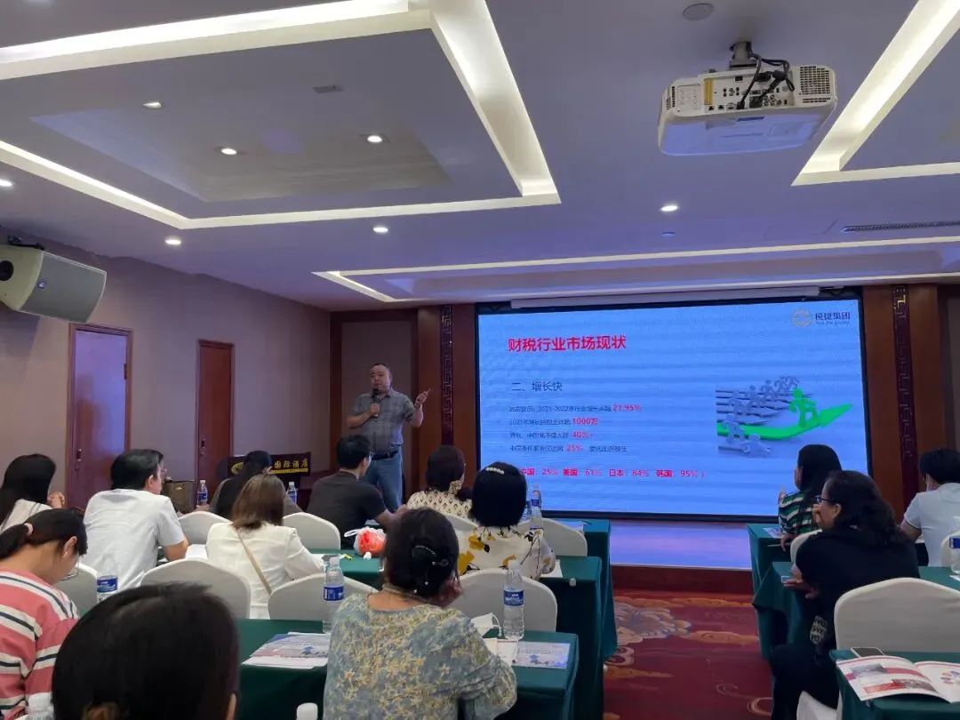 会议现场,由税捷集团总经理于总,从财税同行基础业务-代理记账、财务外包、股权架构搭建等方面分析了财税行业高端产品增利的方向,为在场所有财税同仁提供产品多元化发展新思路。