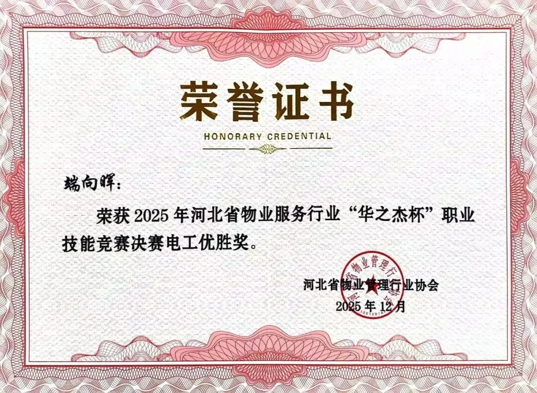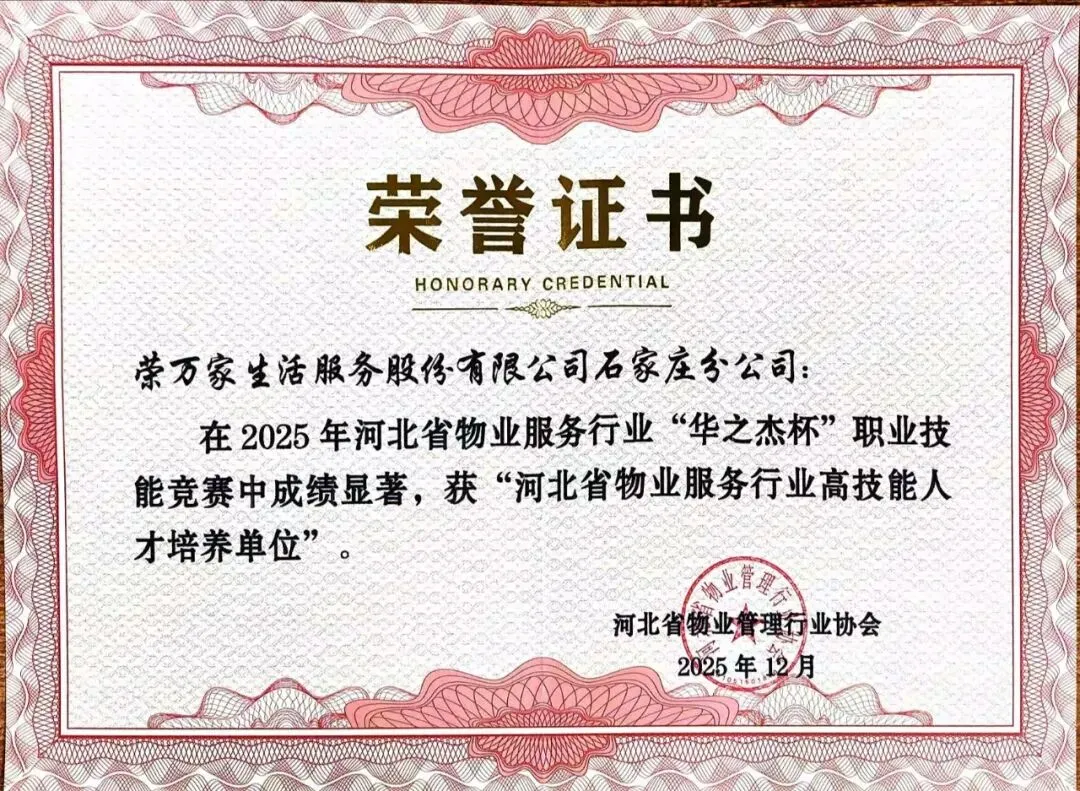 2025河北省物业服务行业“华之杰杯”职业技能竞赛中成绩显著,荣获“河北省物业服务行业高技能人才培养单位”。