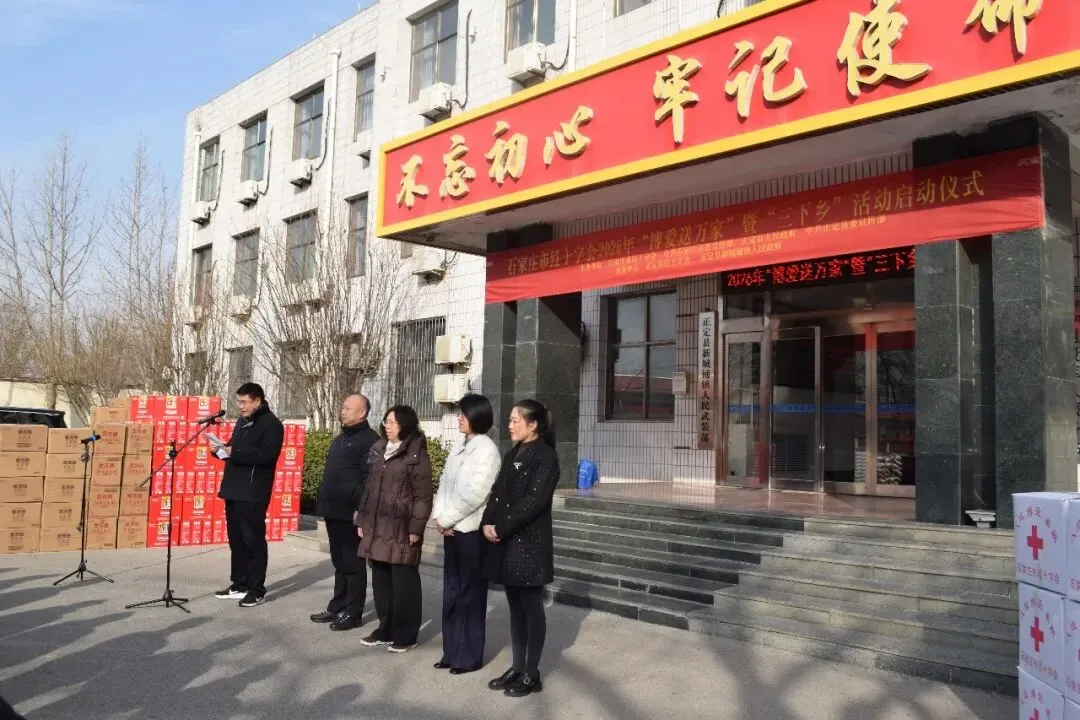 新春将至,岁寒送暖。2月5日,在新春佳节来临之际,石家庄市红十字会联合中共石家庄市委宣传部、正定县人民政府、中共正定县委宣传部、正定县红十字会等单位在正定县举行“博爱送万家”暨“三下乡”活动启动仪式。正定县人民政府副县长、县红十字会会长左小英,石家庄市红十字会秘书长王家平,中共石家庄市委宣传部基层宣传教育科科长丁希,中共正定县委宣传部宣传股股长陈芬霞出席活动,正定县红十字会党组书记、常务副会长李文革主持仪式。