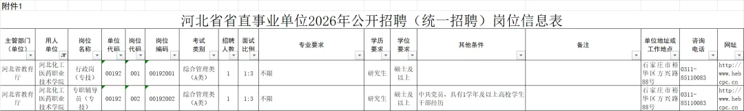 河北化工医药职业技术学院-河北省省直事业单位2026年公开招聘(统一招聘)工作人员公告