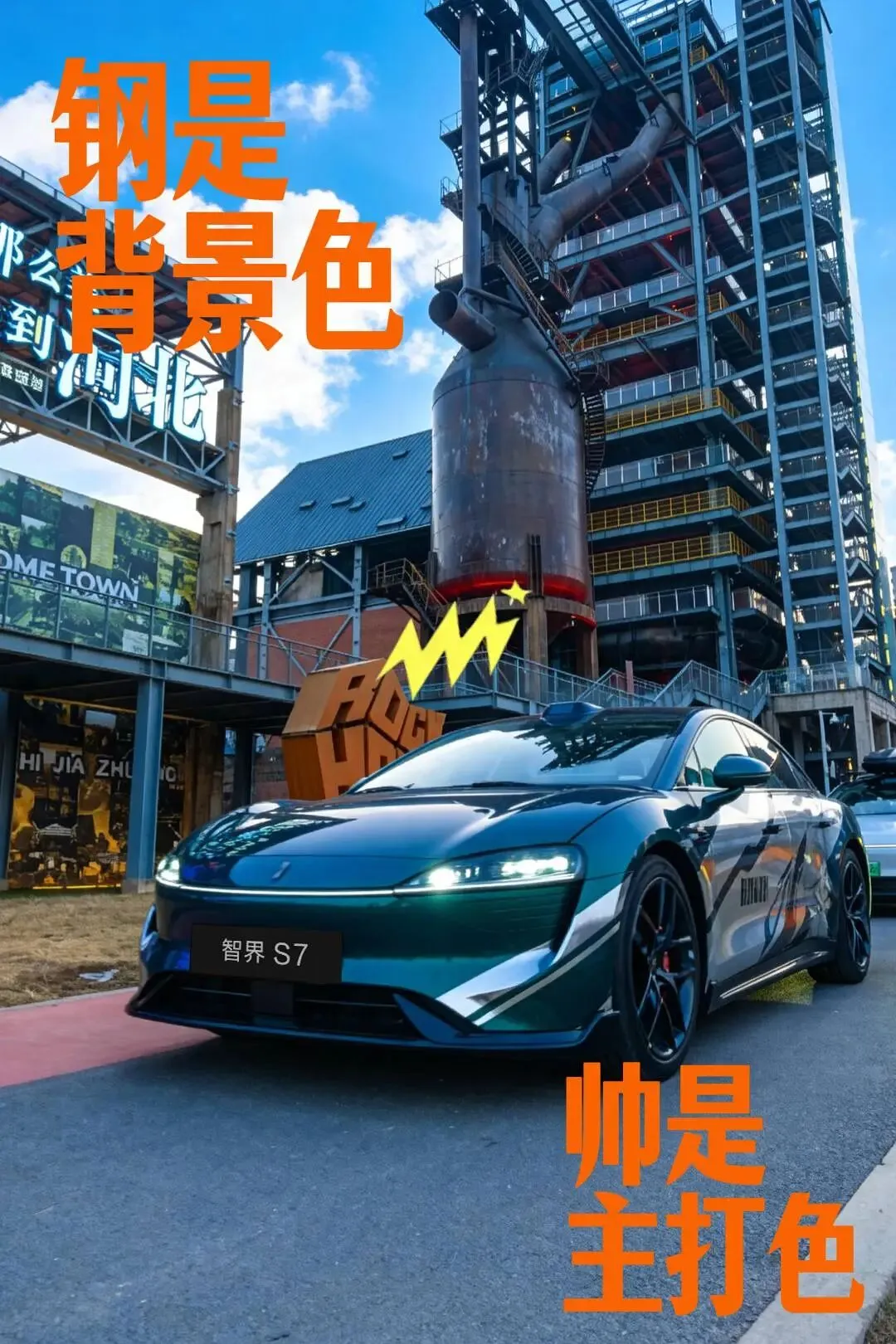 接下来,车队驶入石家庄工业遗址公园。1957年建成的高耸高炉见证了石家庄的工业历史;而写着“ROCKHOMETOWN”的装置,早已成为年轻人的打卡圣地。