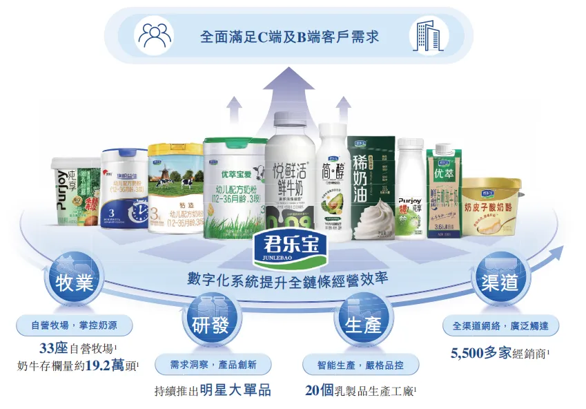 在B端业务上,公司依托全产业链,先后推出了无添加稀奶油、高端黄油、餐饮用奶等产品,满足服务烘焙、咖啡及新式茶饮等细分场景。