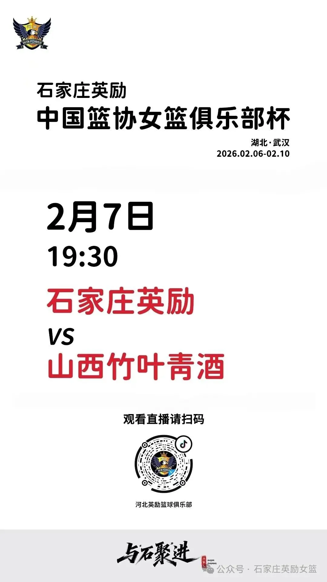 📱 观赛方式:扫描海报二维码,锁定直播间,为英励女篮加油助威!