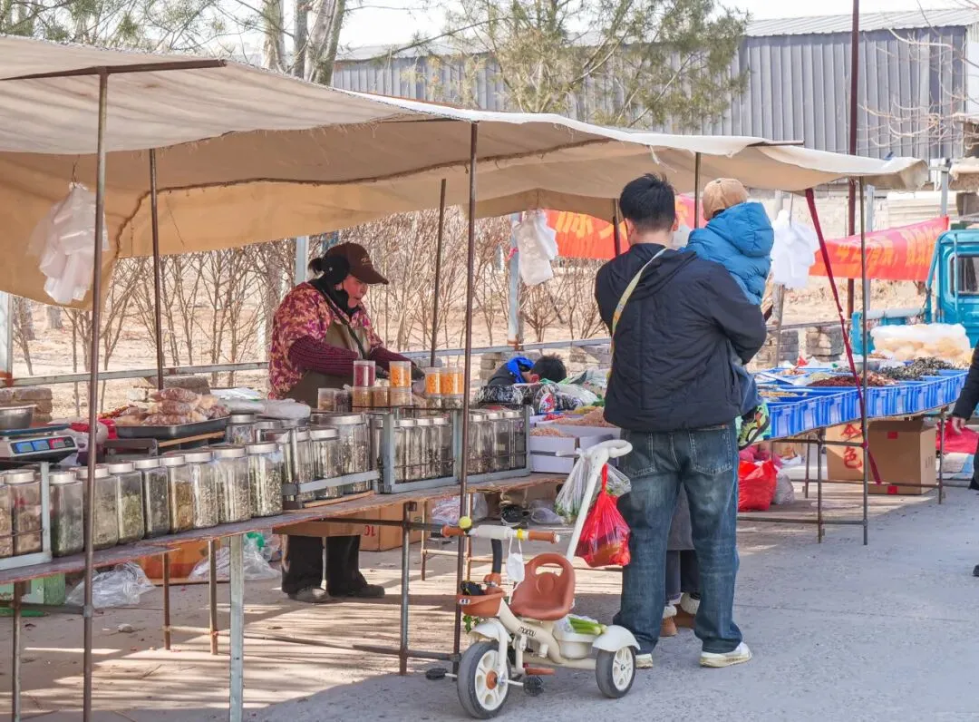 大集上的热闹远不止这些,鲜嫩的肉类、鲜香的水产、地道的土特产、可口的小吃……每一个摊位都摆满了好物,每一张笑脸都写满了期盼。赶大集,赶的是热闹,办的是年货,藏的是乡愁,更是老百姓对美好生活的向往。看着这人头攒动的热闹景象,听着这熟悉的吆喝声,才真正感受到:年,真的来了!