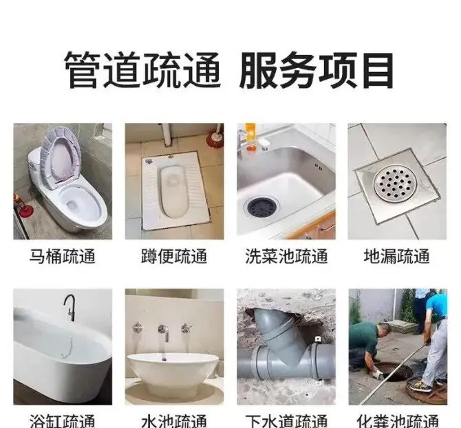 | 使用家用/大型疏通机,疏通各类疑难下水道、卫生间、地漏、浴缸、菜池、阴沟、马桶、蹲坑等 |