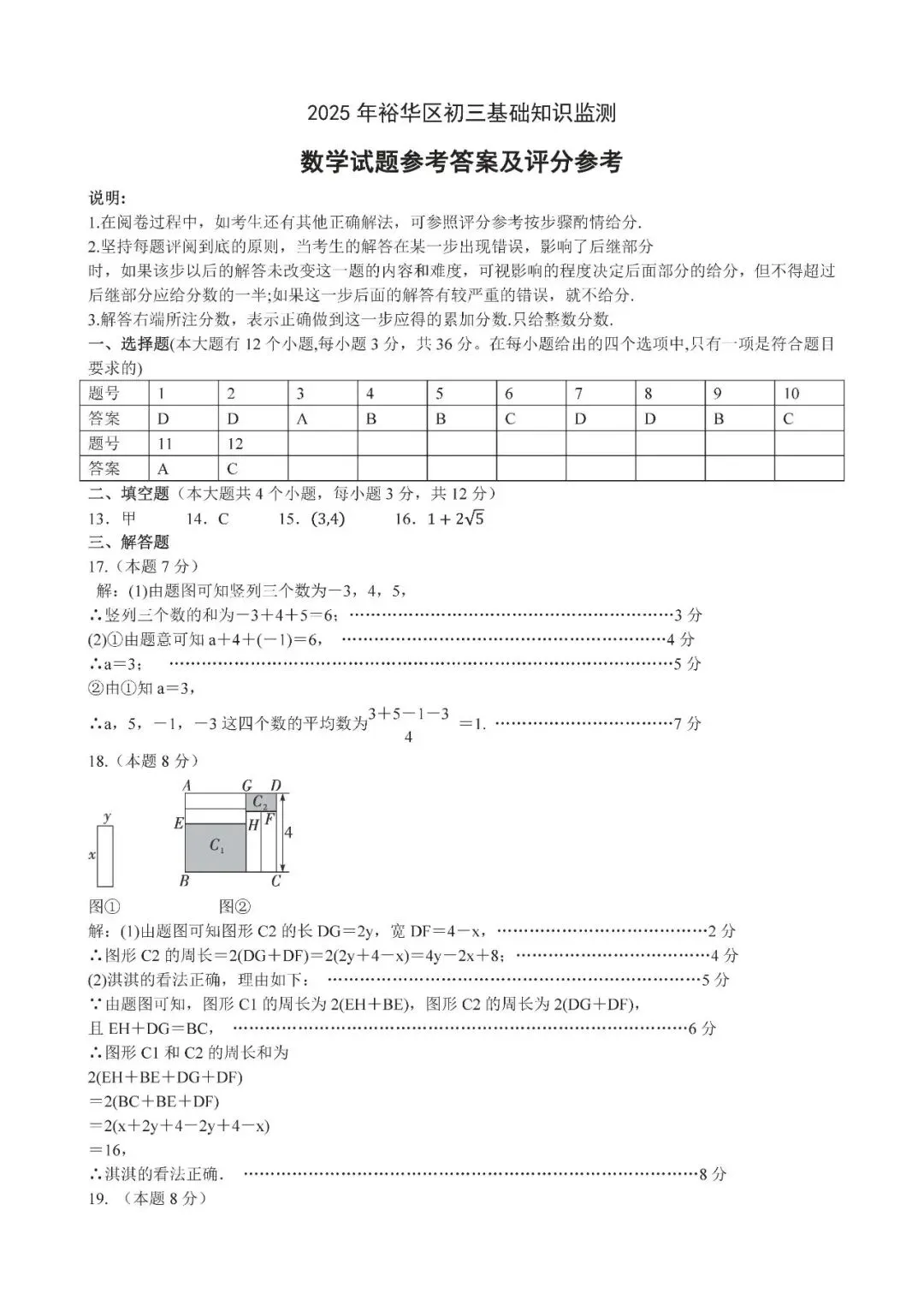 2025年石家庄裕华区一模数学试卷(含答案)